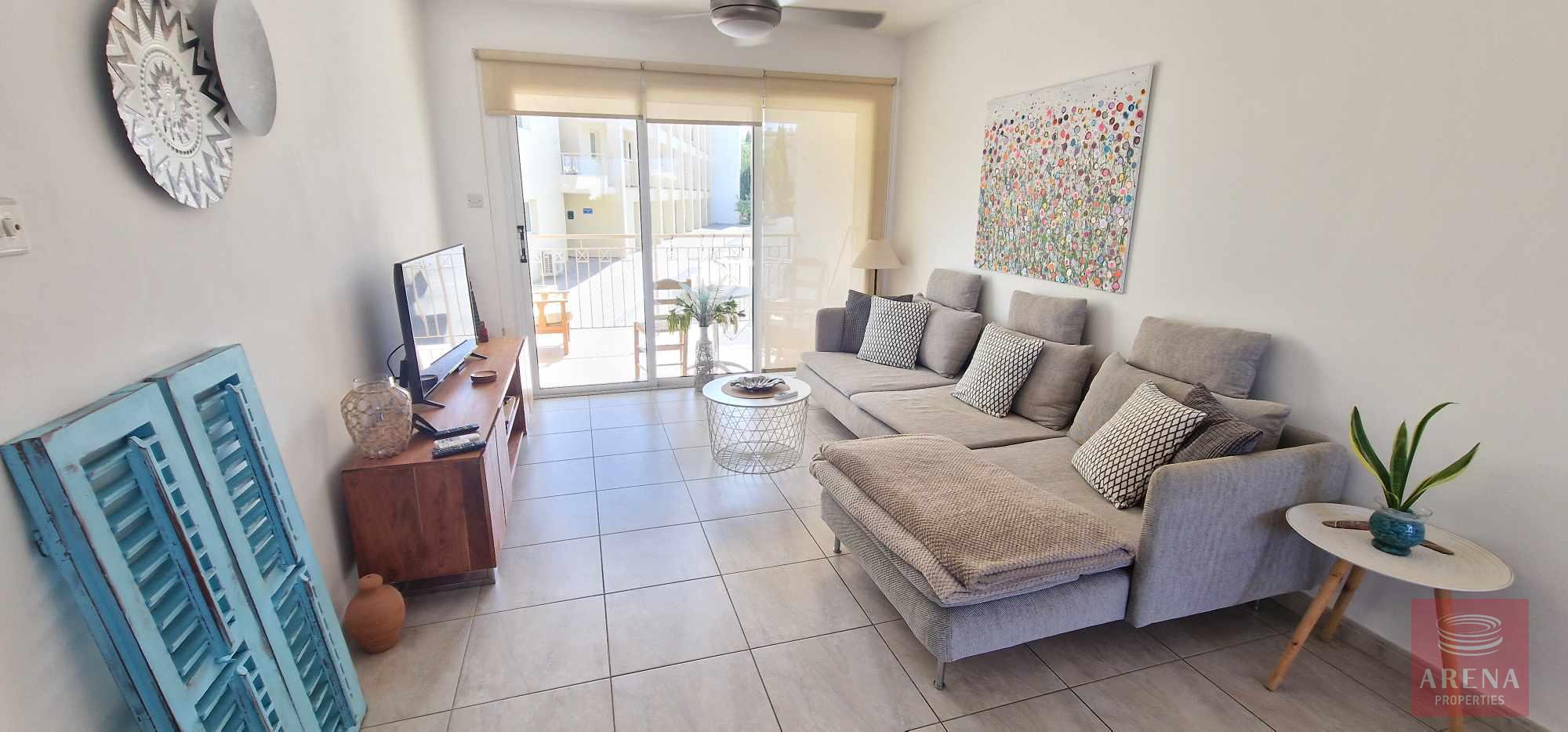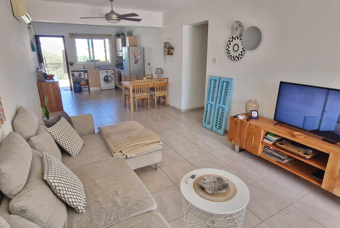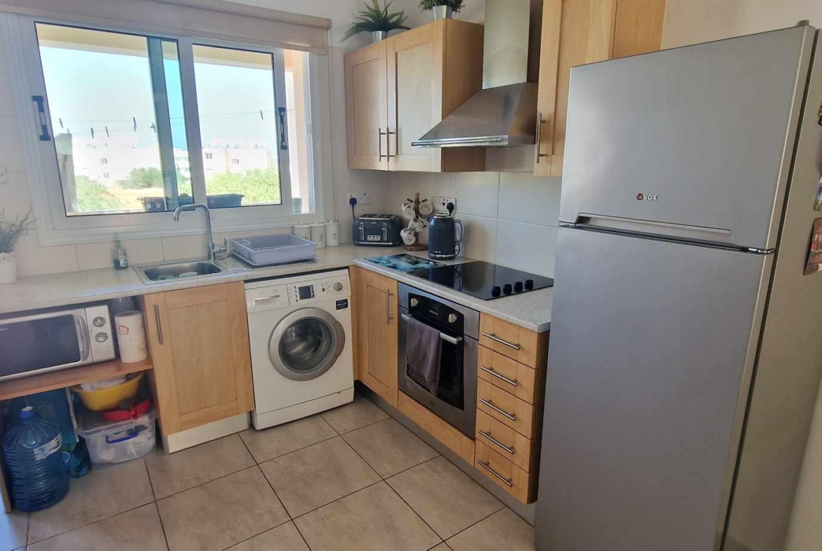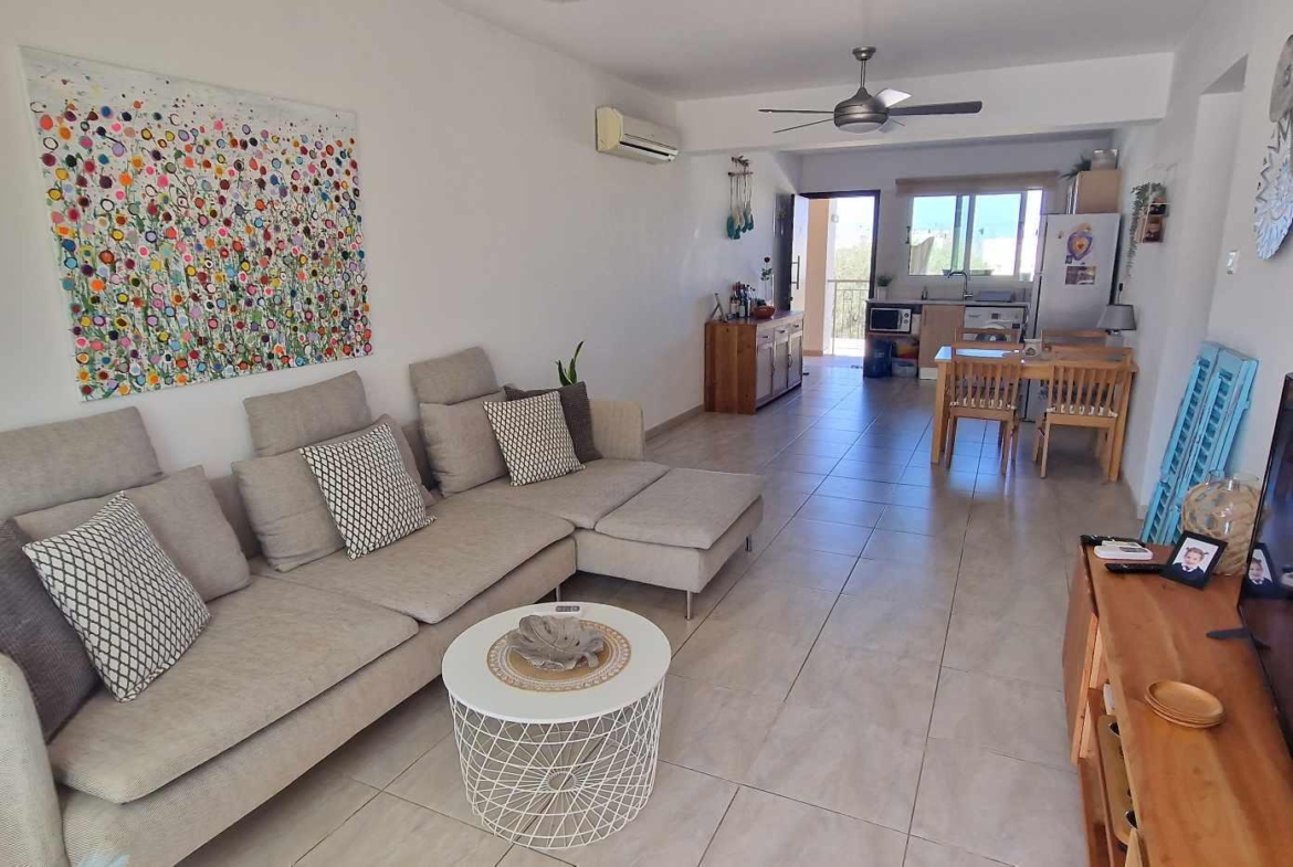 The apartment has views of the communal garden on the one side and of the Kapparis Sea on the other.