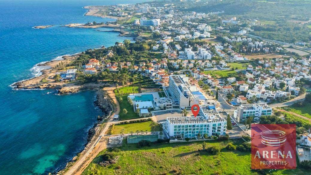 The property is a one-bedroom apartment with a sea and pool view in the Residence in Protaras, Paralimni Municipality. This is a seafront block of apartments (Block A and Block B) in the tourist centre, just a few steps away from Vizakia Beach and in close proximity to the famous sandy Fig Tree Bay.