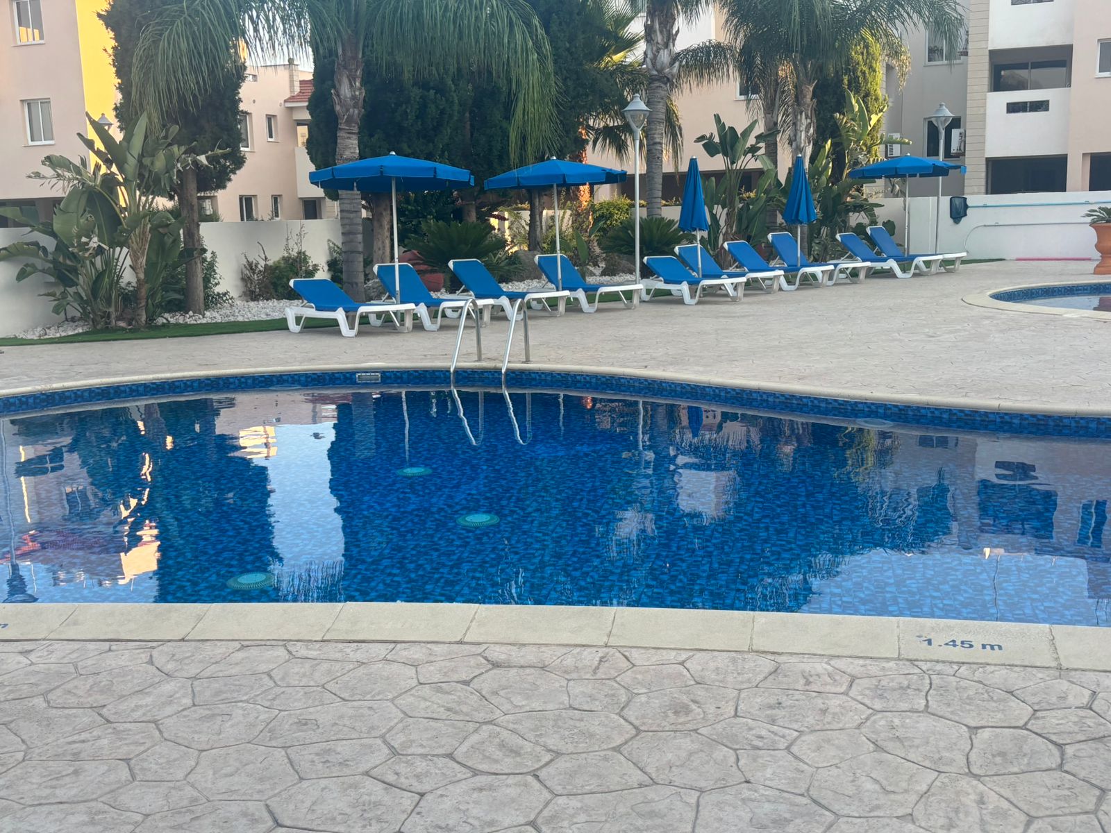 A major highlight of this complex is the fantastic communal facilities, including a large, sparkling swimming pool and a dedicated tennis/sports court.