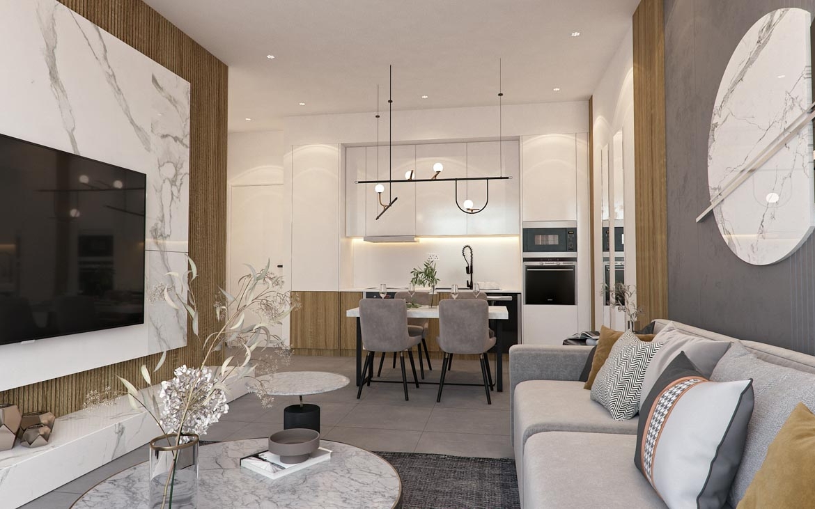 The project will consist of one-, two-, and three-bedroom apartments and penthouses with spacious verandas, which promise their residents moments of relaxation and comfort. This beautiful complex has a swimming pool exclusively for the owners.