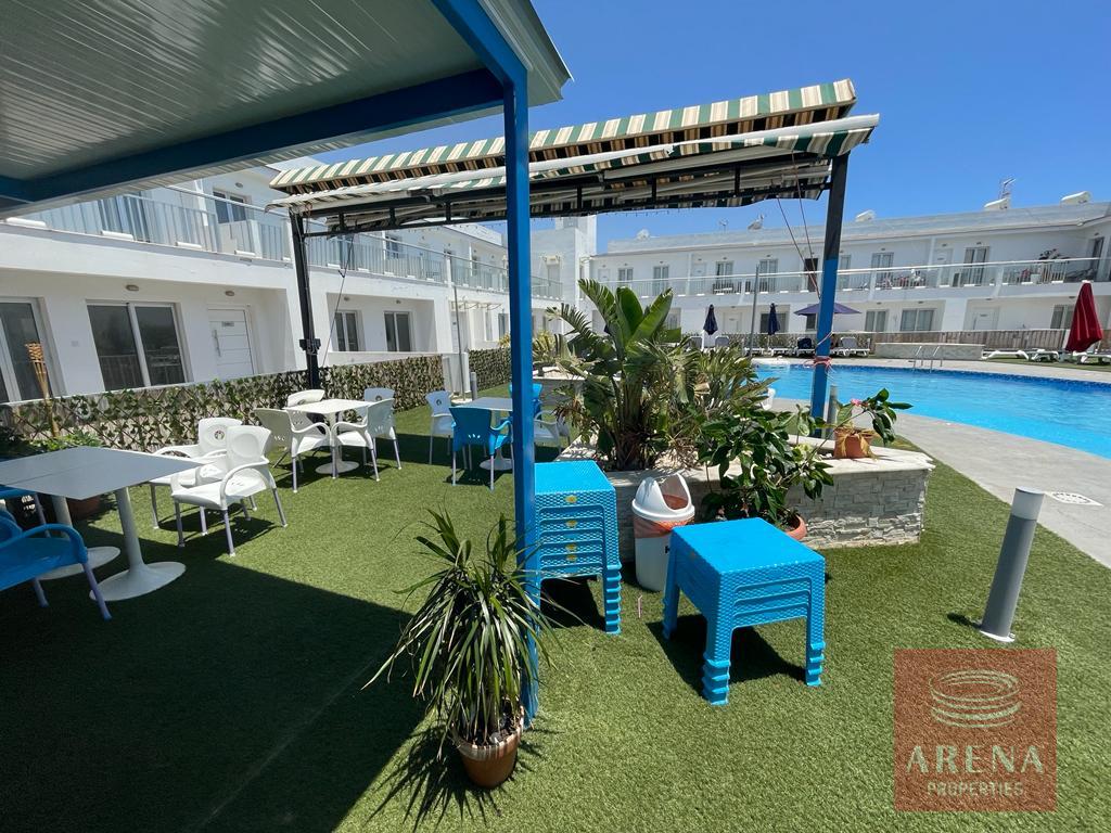 This is a two-bedroom apartment on the ground floor in Mazotos, Larnaca.