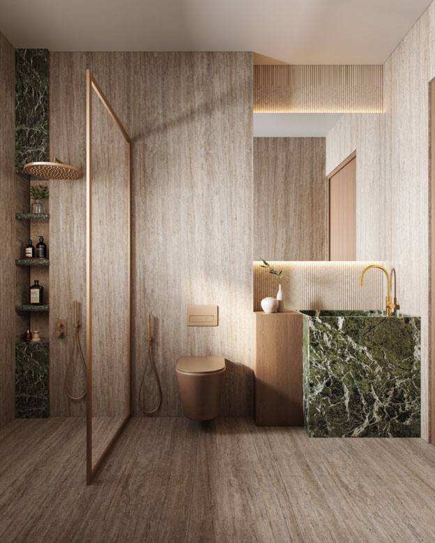 Its contemporary exterior harmoniously blends materials and textures, setting the tone for the quality found within.