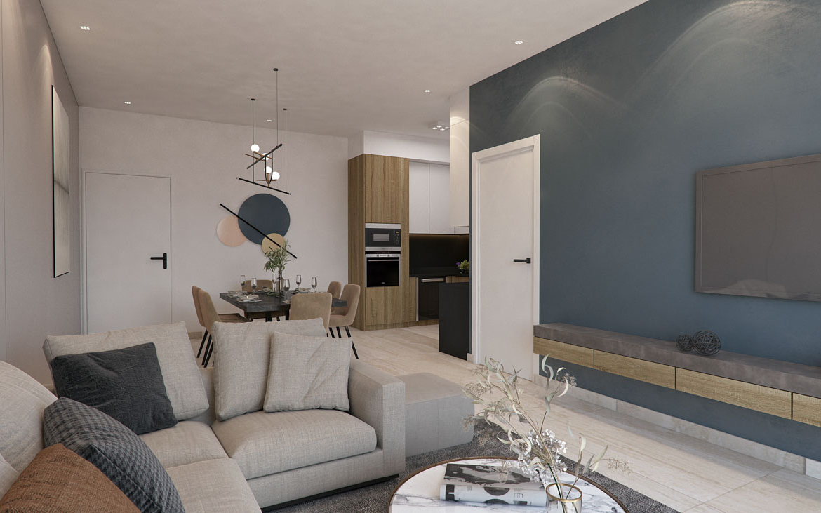 The project will consist of one-, two-, and three-bedroom apartments and penthouses with spacious verandas, which promise their residents moments of relaxation and comfort. This beautiful complex has a swimming pool exclusively for the owners.
