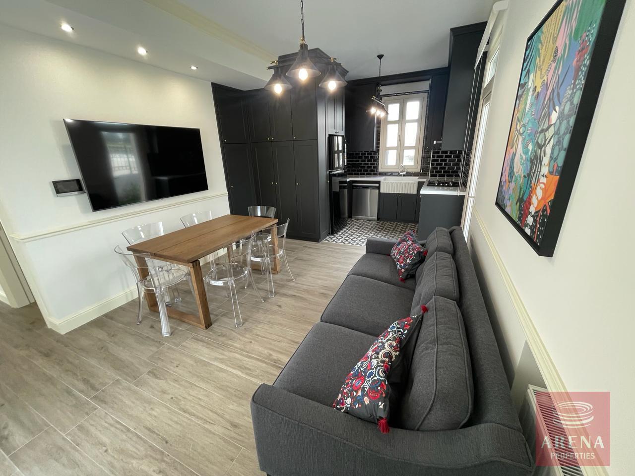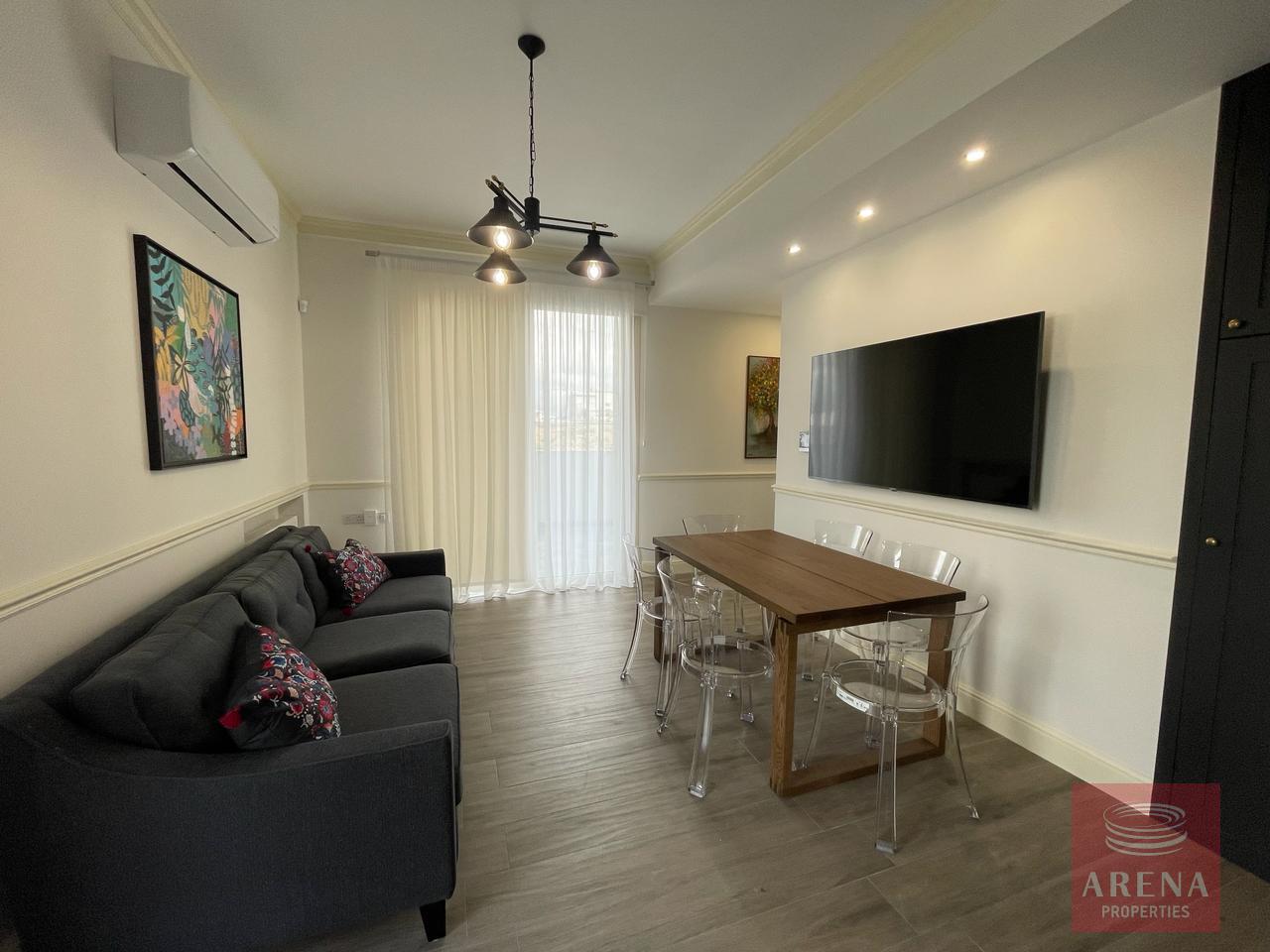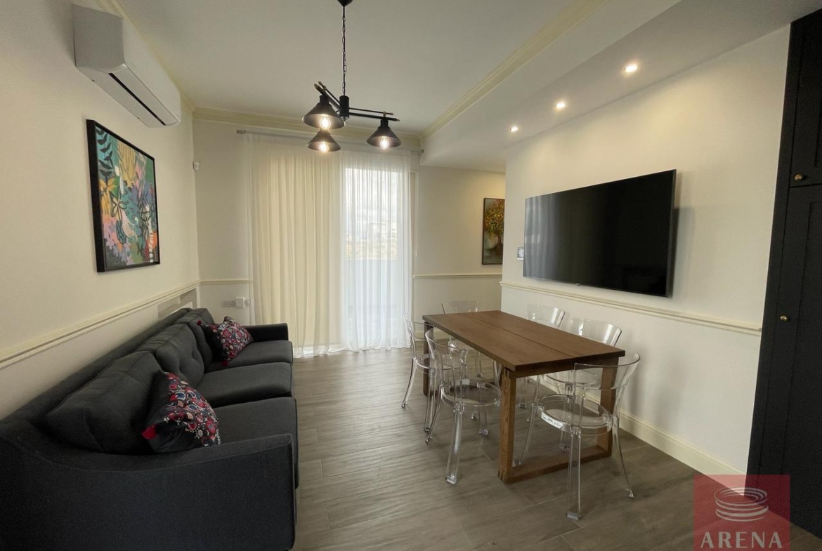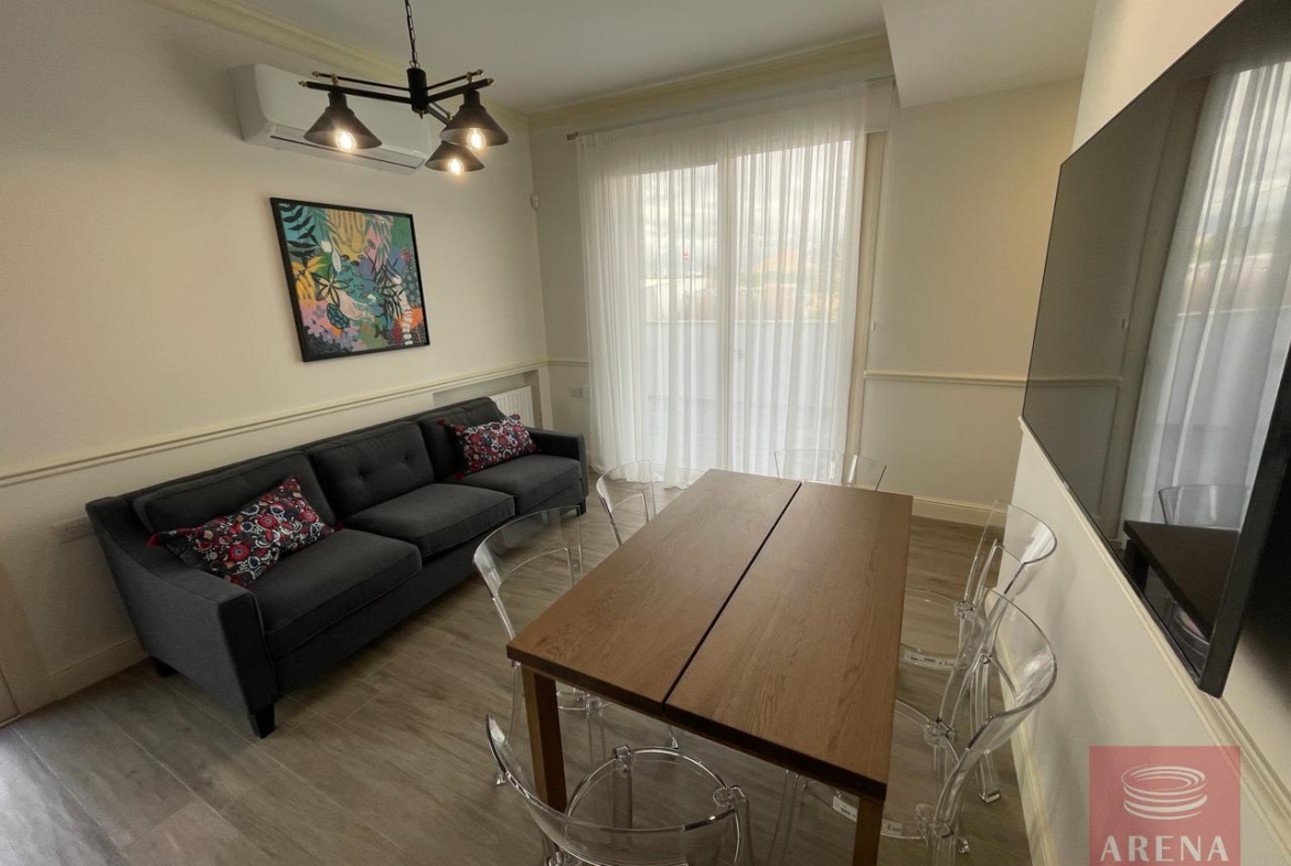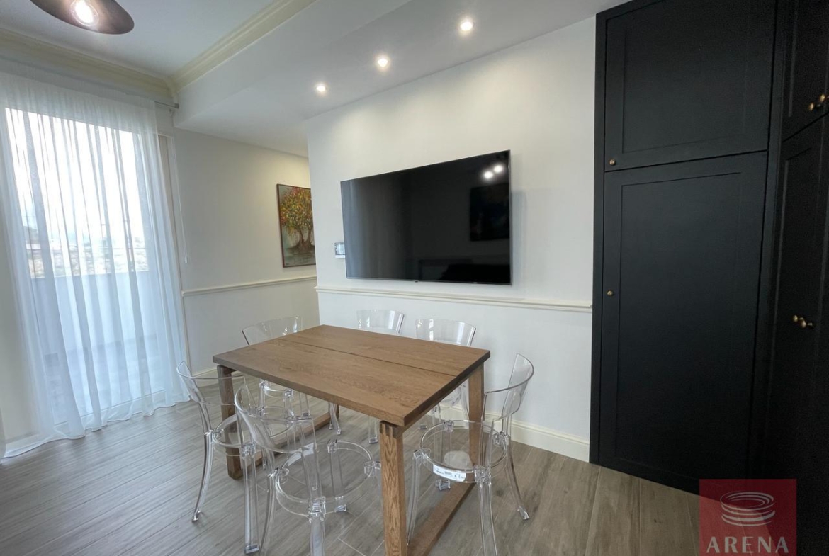 ▪ Sitting room in kitchen area with large screen smart TV and dining table