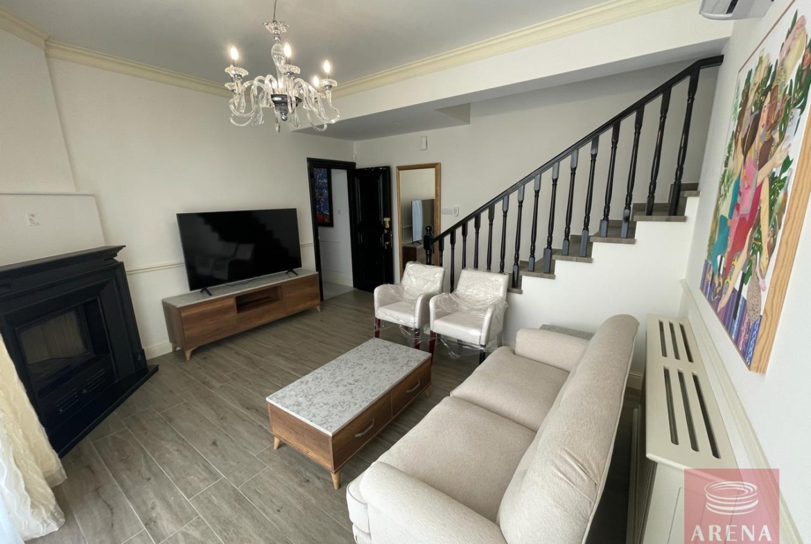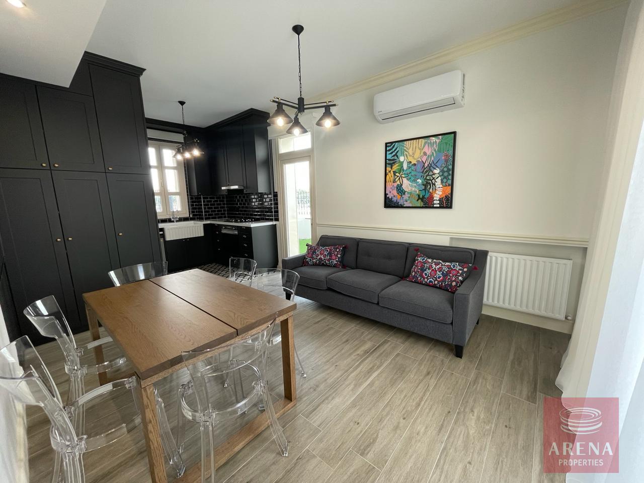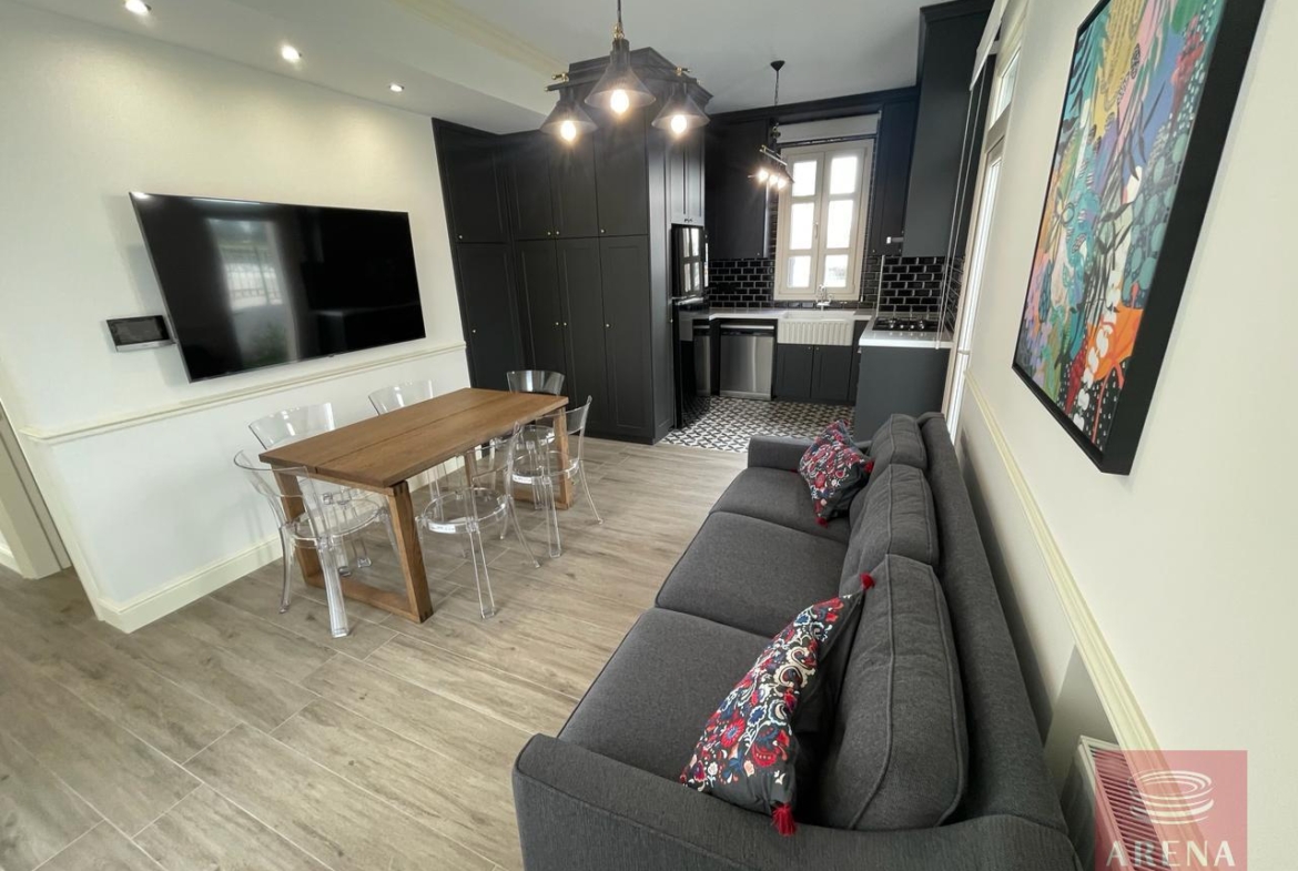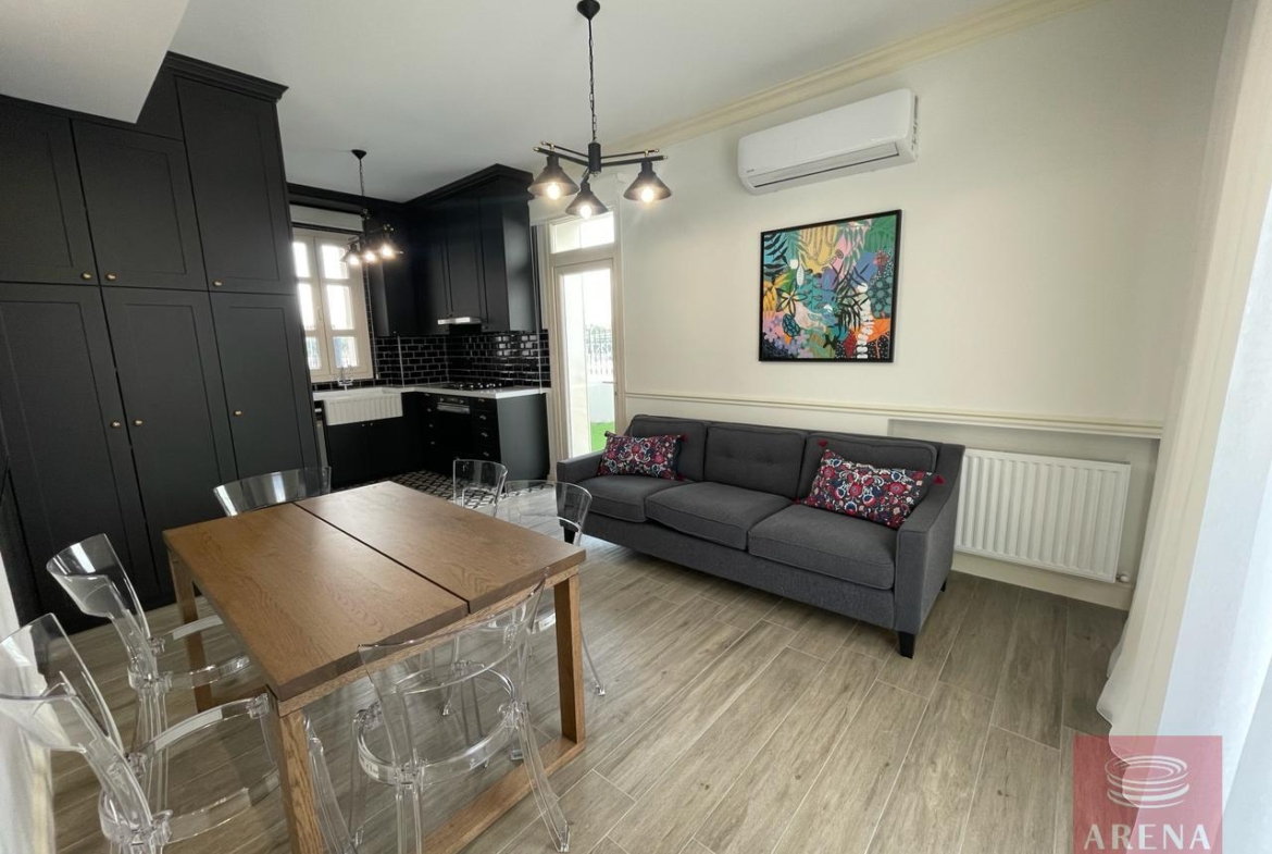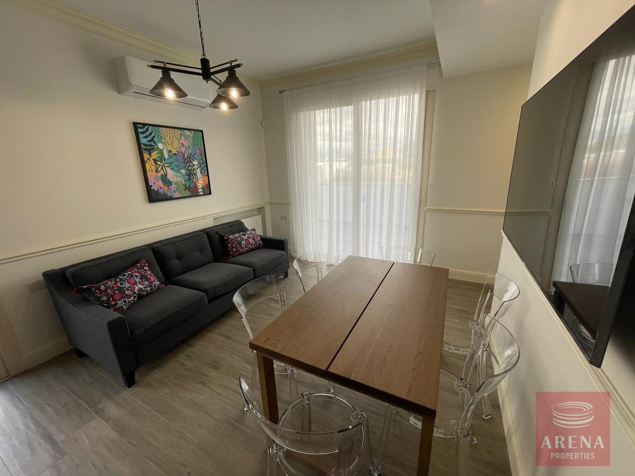 ▪ Sitting room in kitchen area with large screen smart TV and dining table