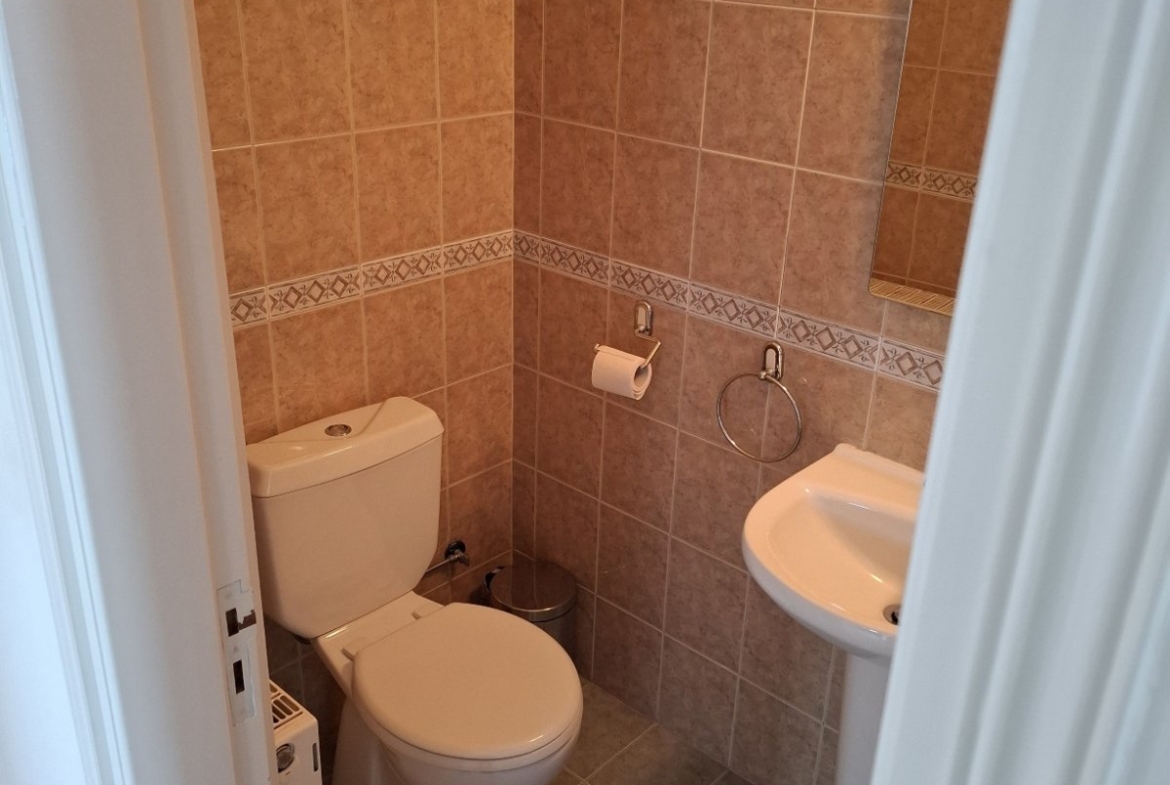 • Includes three bedrooms, a full bathroom, and a separate guest toilet.