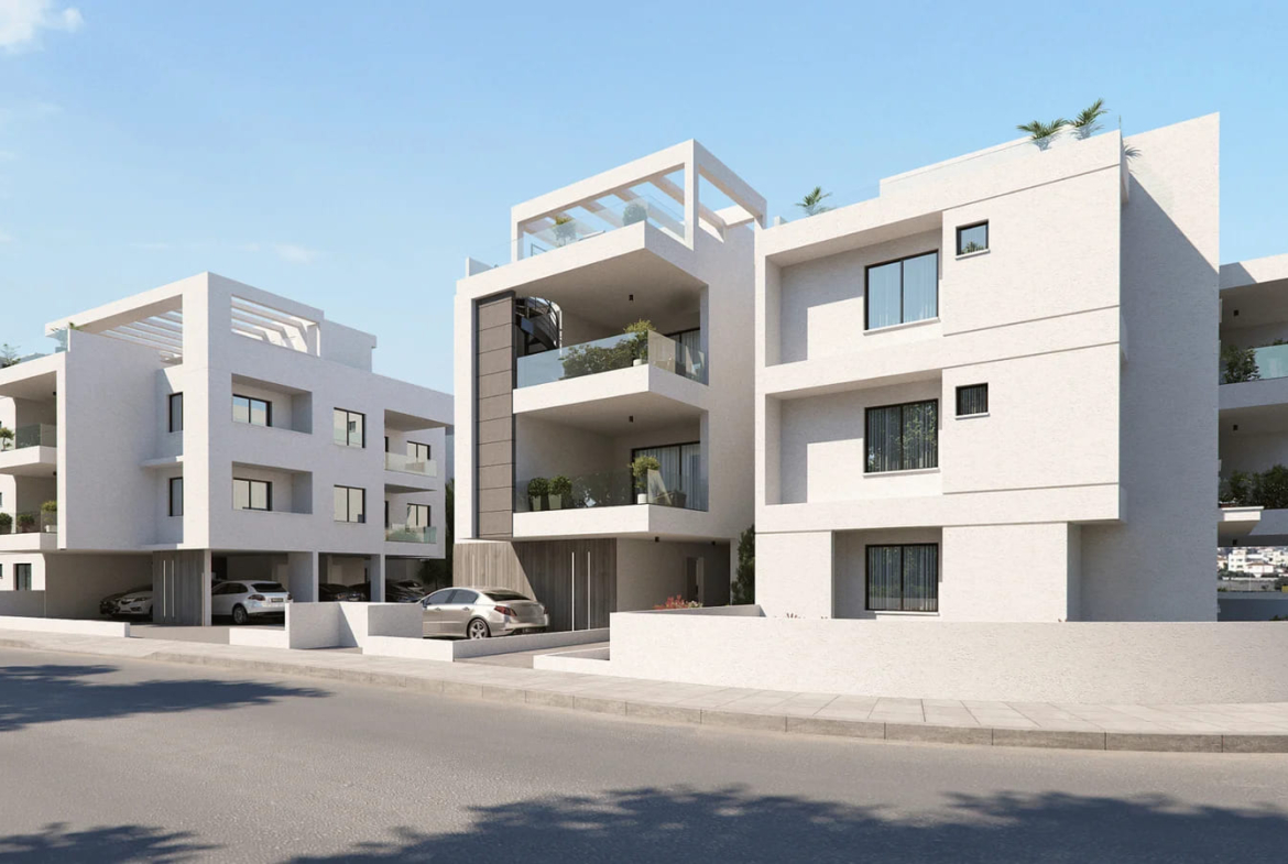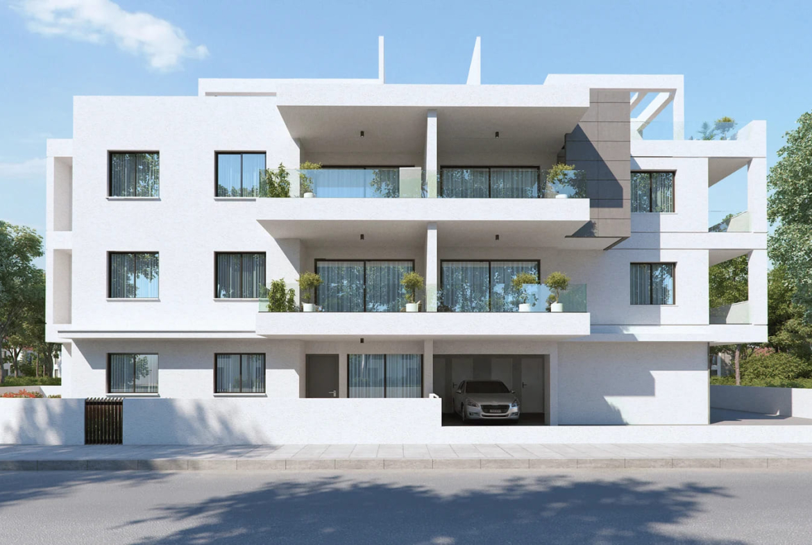 The new project is located in Livadia. The modern design of the apartment building emphasizes detail and ensures residents’ privacy. It is a two-story building with fifteen comfortable and contemporary apartments. The building is divided into two complexes, one with nine apartments and the other with six, each with its own independent entrance, providing full autonomy.