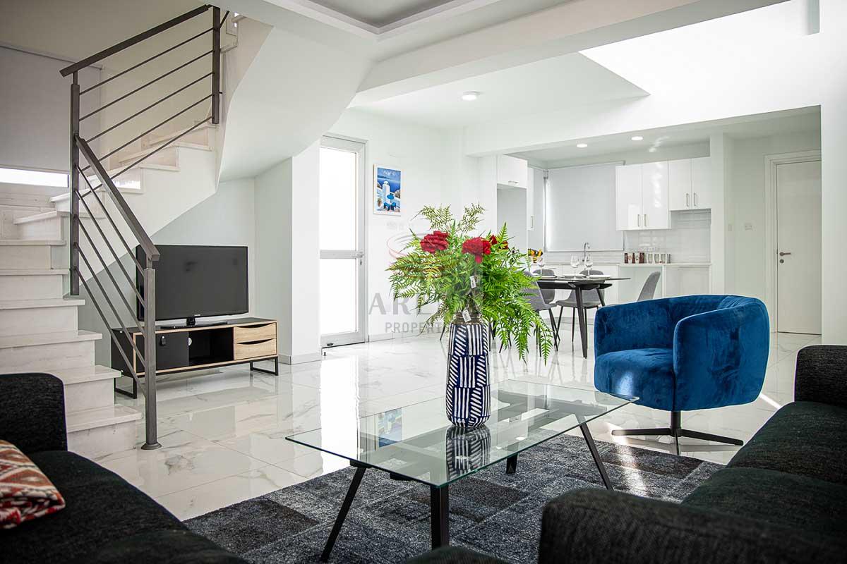 It is part of a unique residential complex located on Dekelia road, the most sought after area in Larnaca. The area also offers many amenities.  Just a couple of minutes walk to one of the sandy Blue Flag beaches.  Only 10 minutes drive to Larnaca town centre with all amenities, the Finikudes promenade, schools such as American Academy and 15 minutes to Larnaca International Airport via the easily accessible highway that links all major towns in Cyprus.