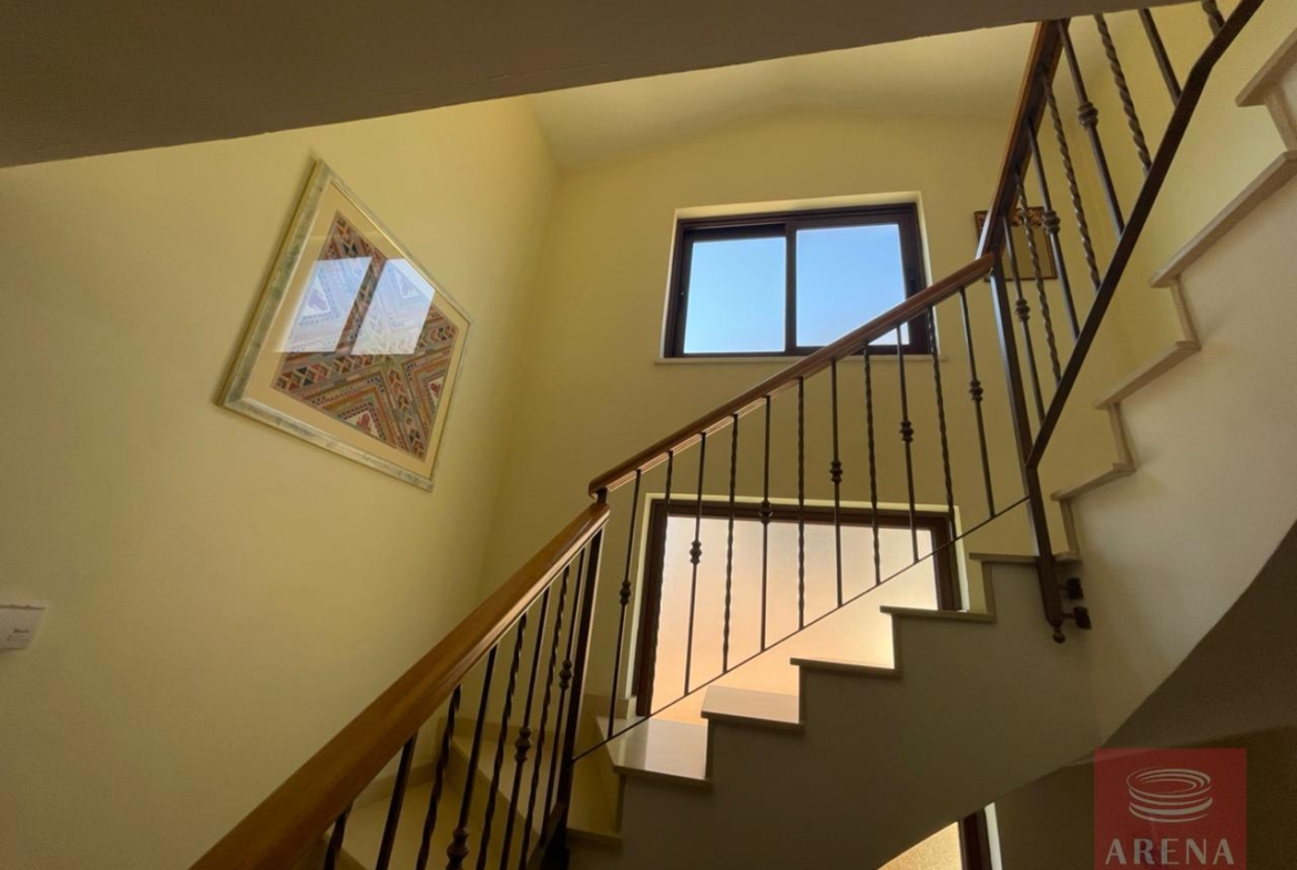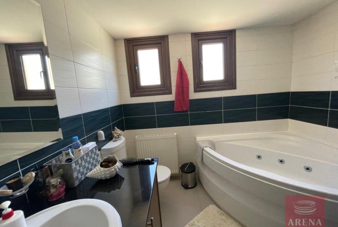 The villa is located in a quiet area and consists of three good size bedrooms, a master bedroom with an en-suite, and a family bathroom on the second floor. The villa also has an attic, which can be used as a fourth bedroom or as an office.