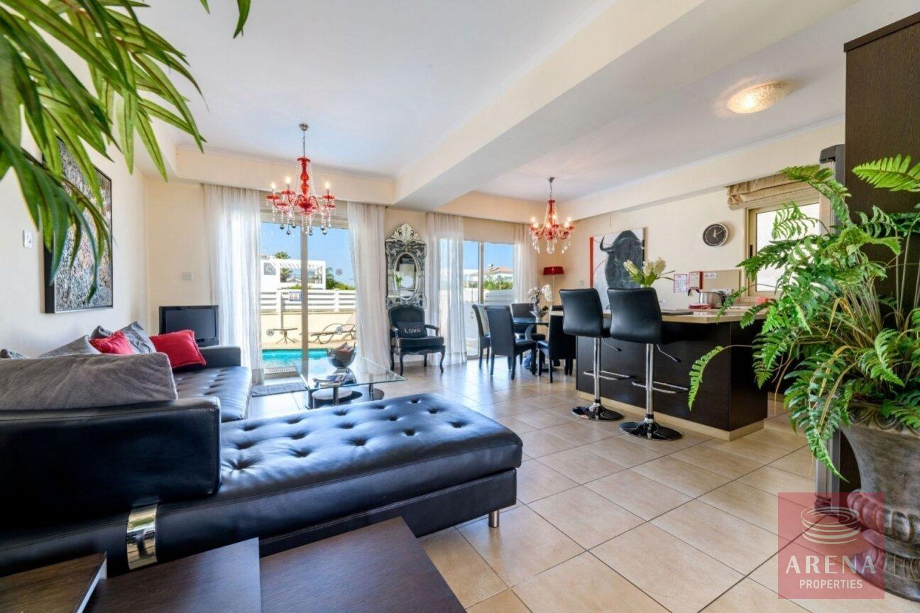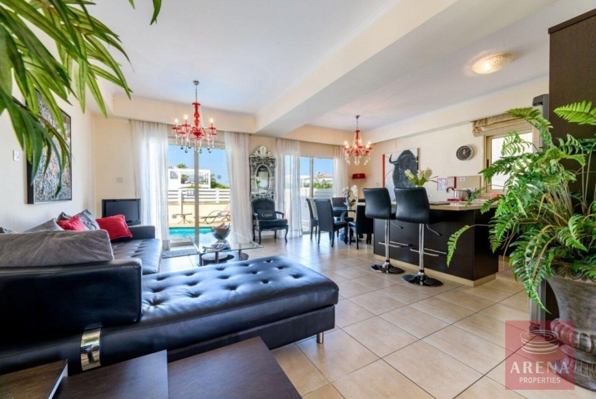 Located in the iconic area of Protaras, only 2 minutes from the famous Fig Tree Bay, this luxury 3 bedroom villa offers a one of a kind quality architecture and unique design. From the landscape front gardens to the marble floors, the private pool, to the fully fitted kitchens, the moment you step inside this beautiful property the attention to detail will impress.