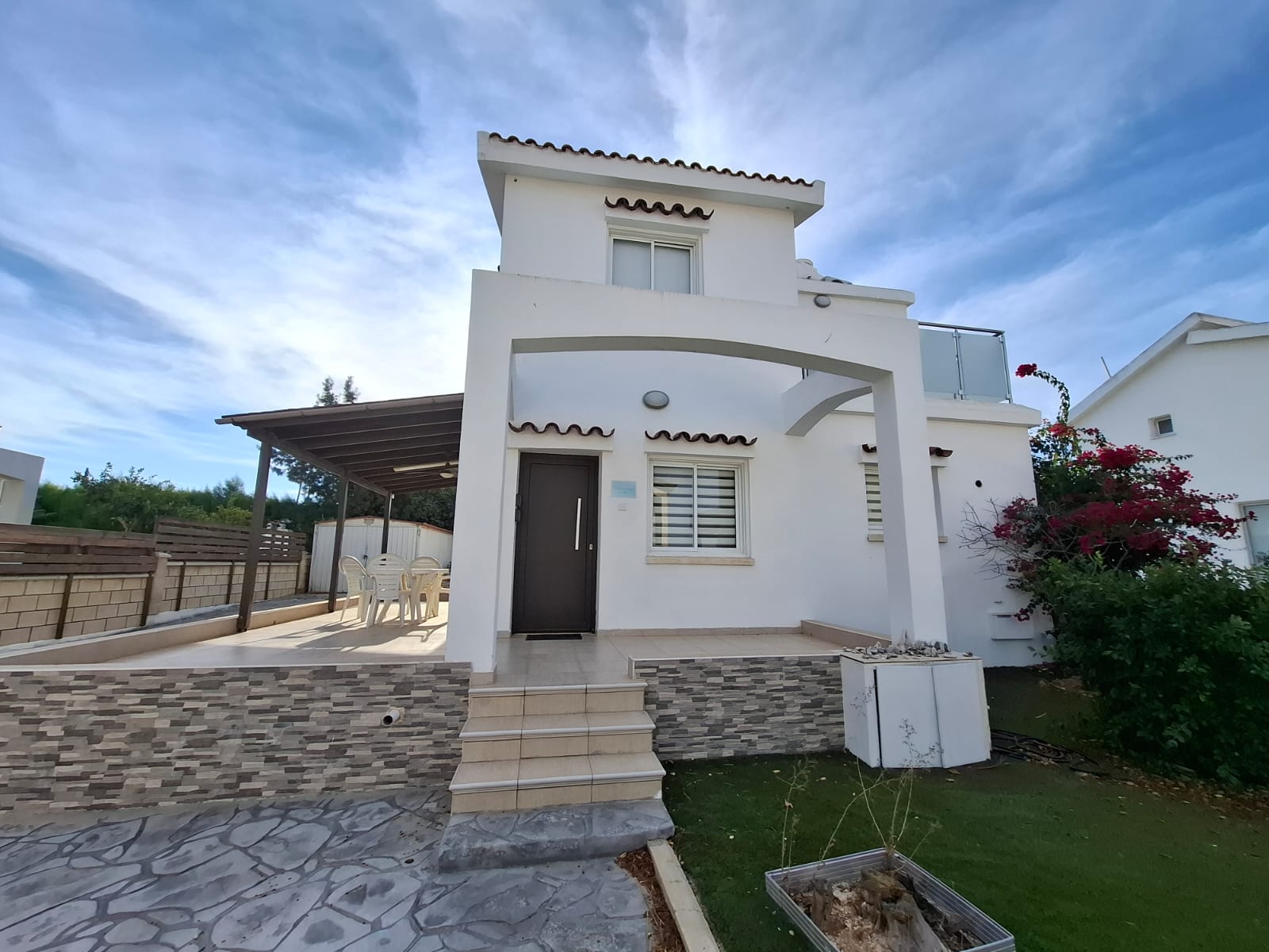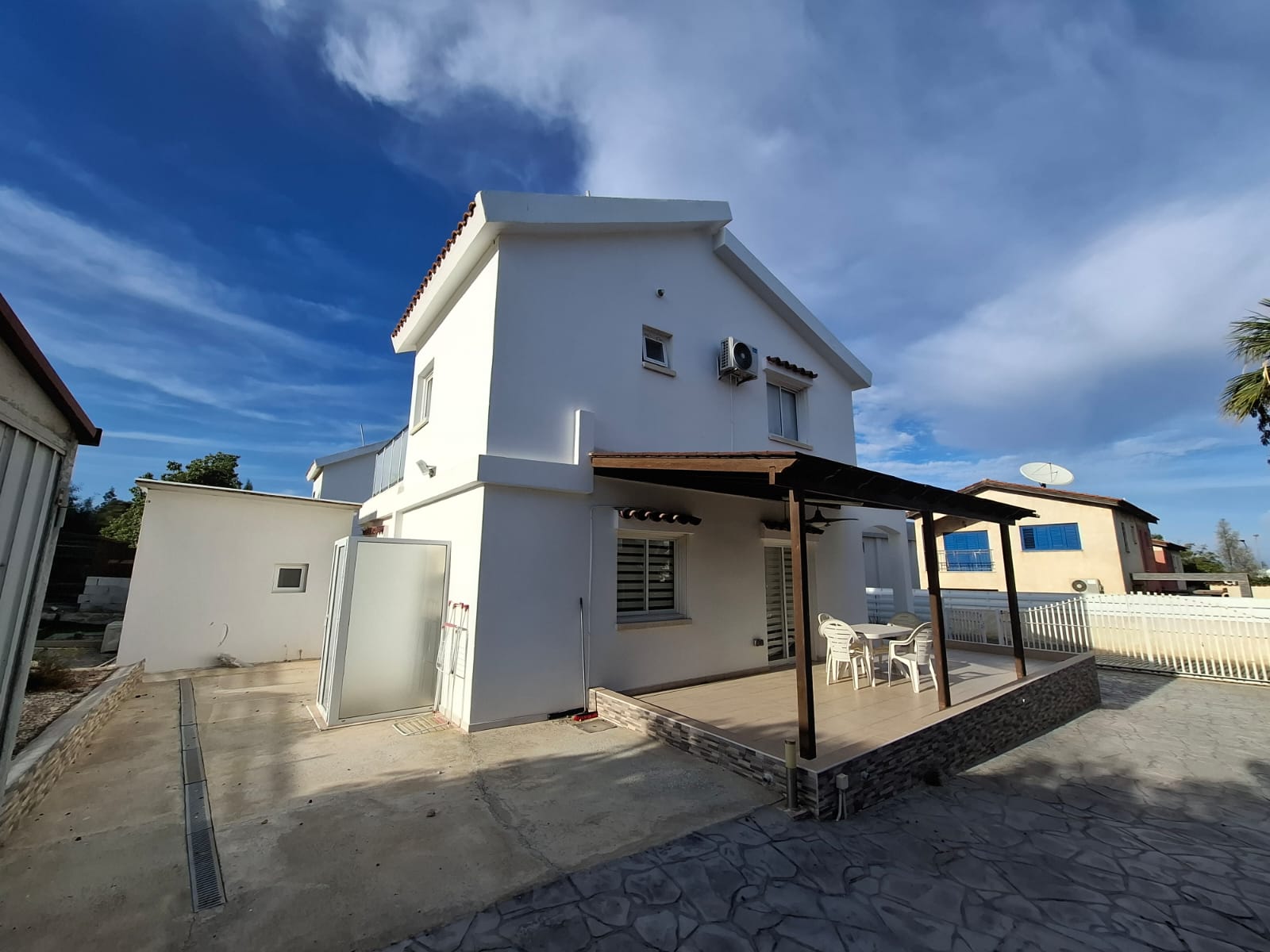 Outdoor Oasis: A 300m² plot featuring a spacious pergola, ideal for alfresco dining and relaxation while taking in the sea views.