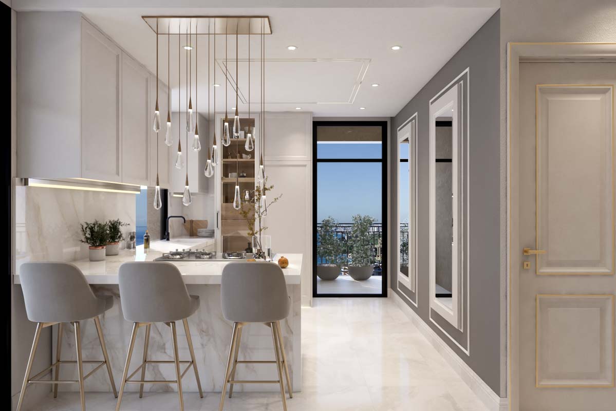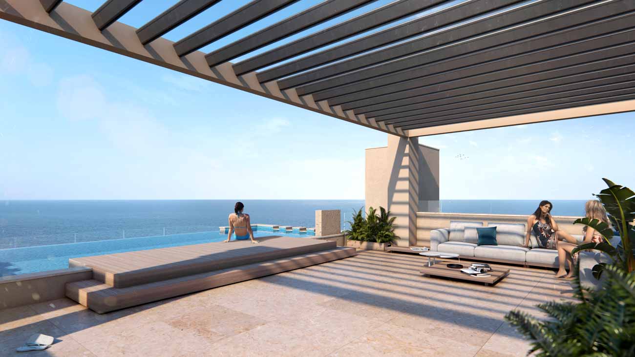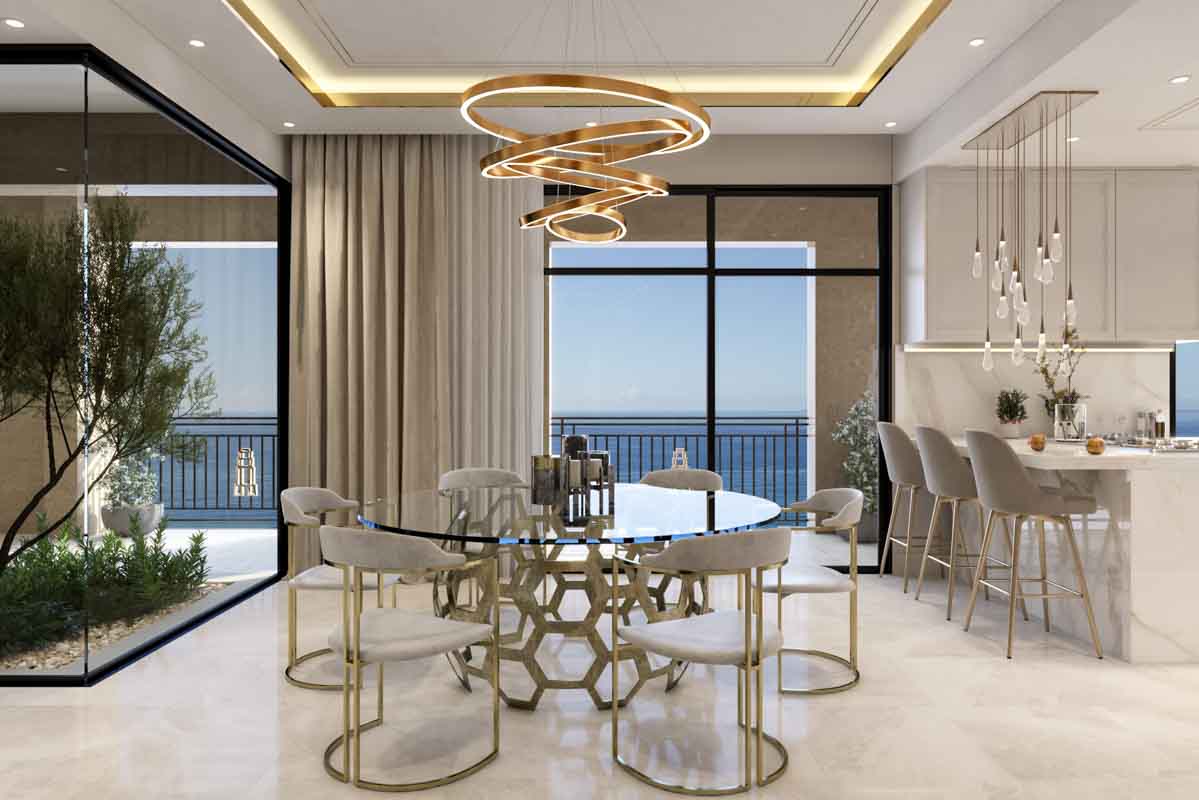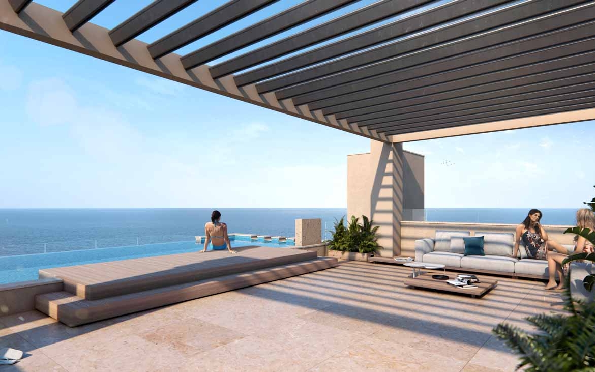 - Sea views start from the first residential level. The upper floors offer stunning views of Limassol and its surroundings, the vast expanse of the sea, merging with the sky on the horizon, as well as the peaks of the Troodos mountain range.