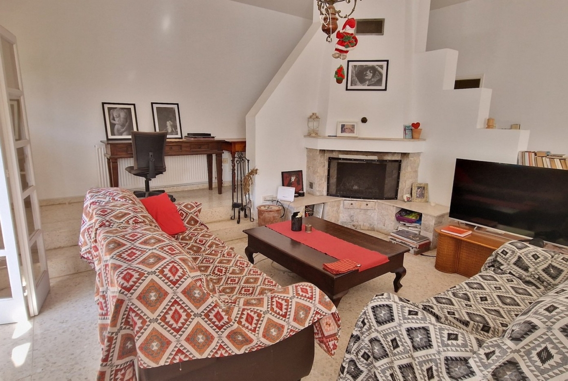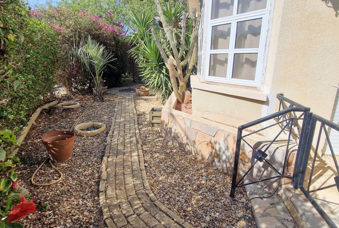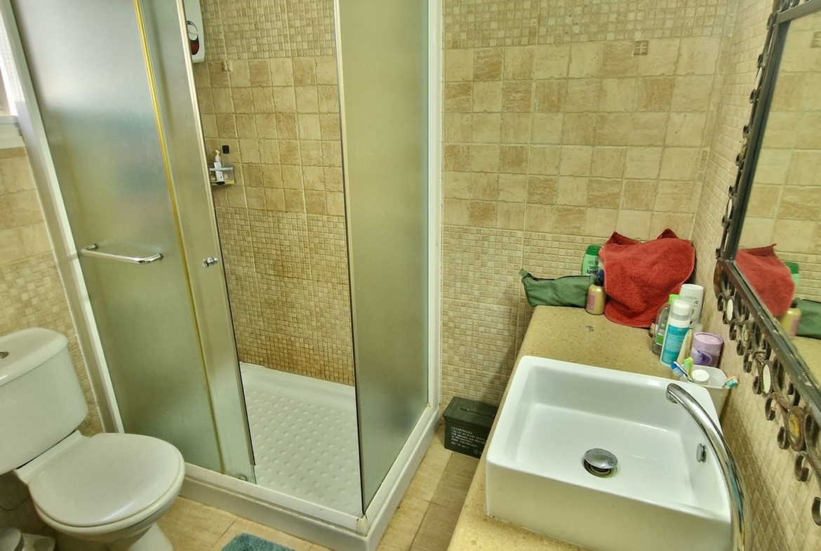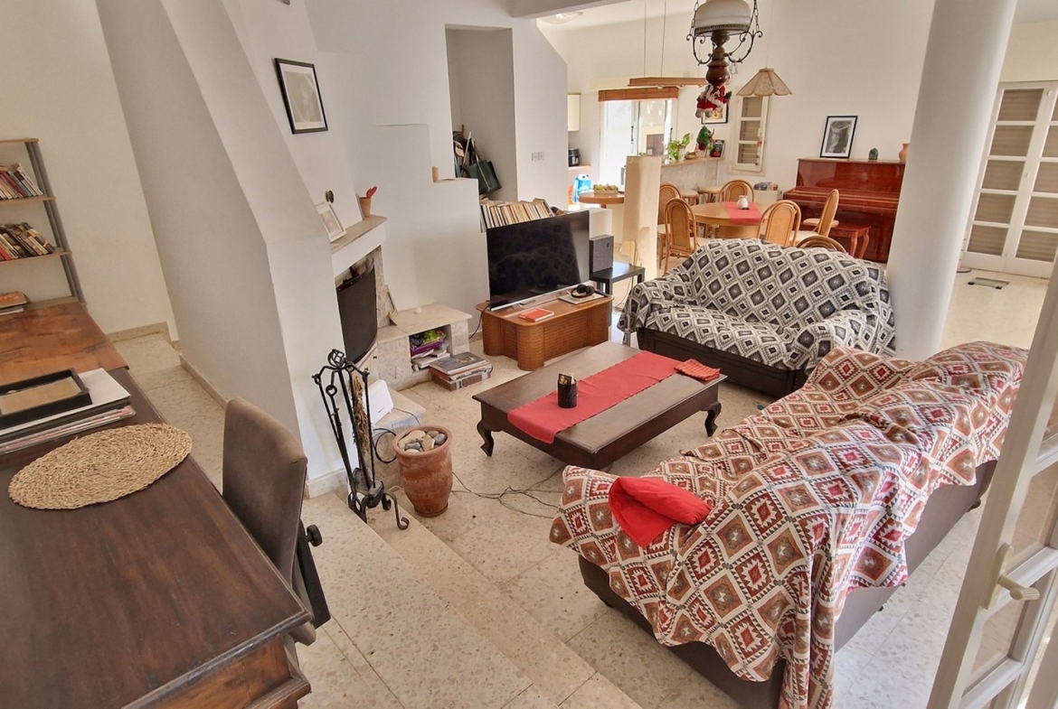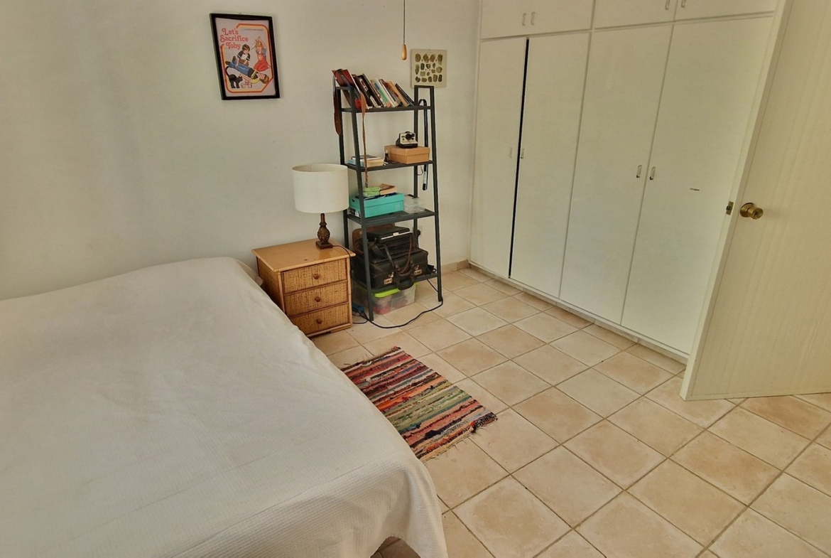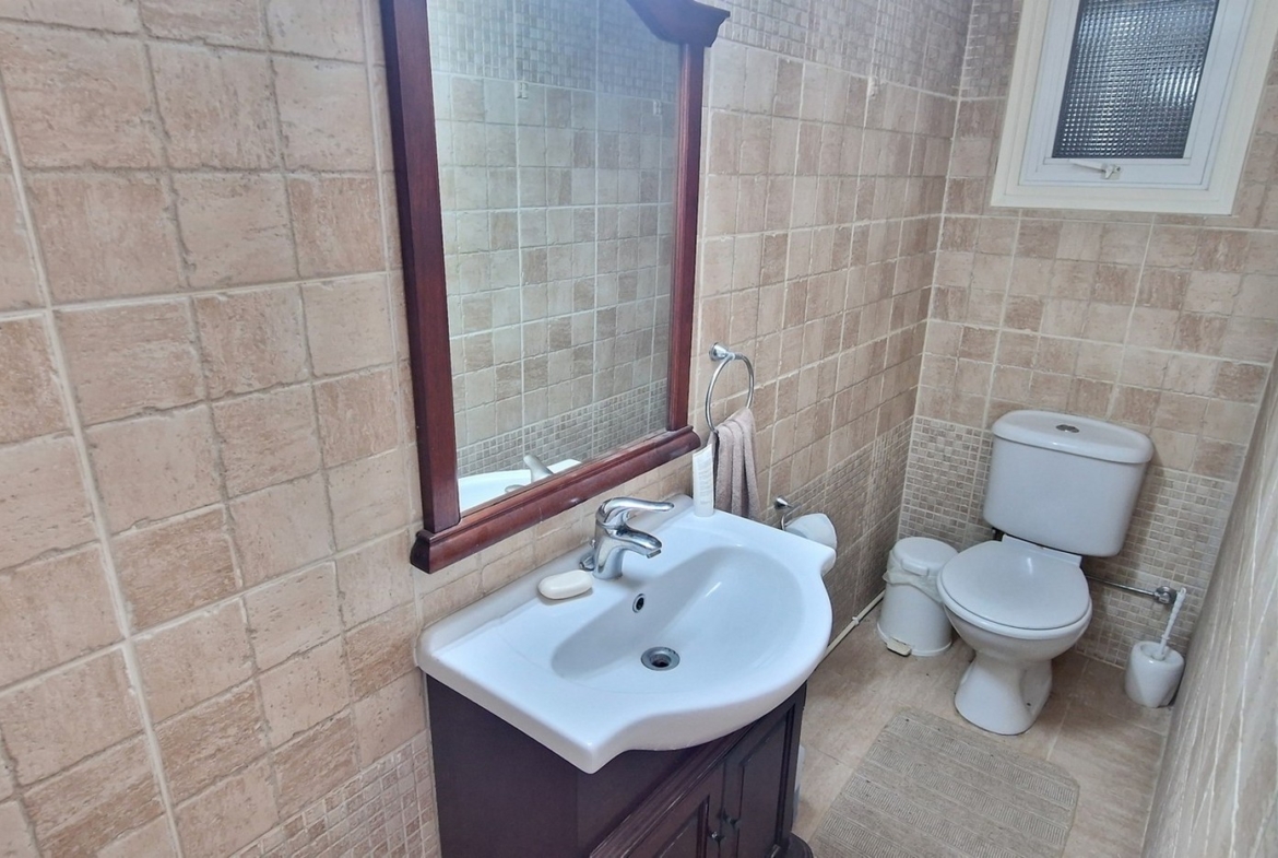 The property is built in such a way that the open plan area, consisting of the living room, kitchen and dining areas, together with a guest bedroom, guest wc and storage room, are on the first level, whilst the remaining three bedrooms, laundry room and bathroom, are on an elevated level.