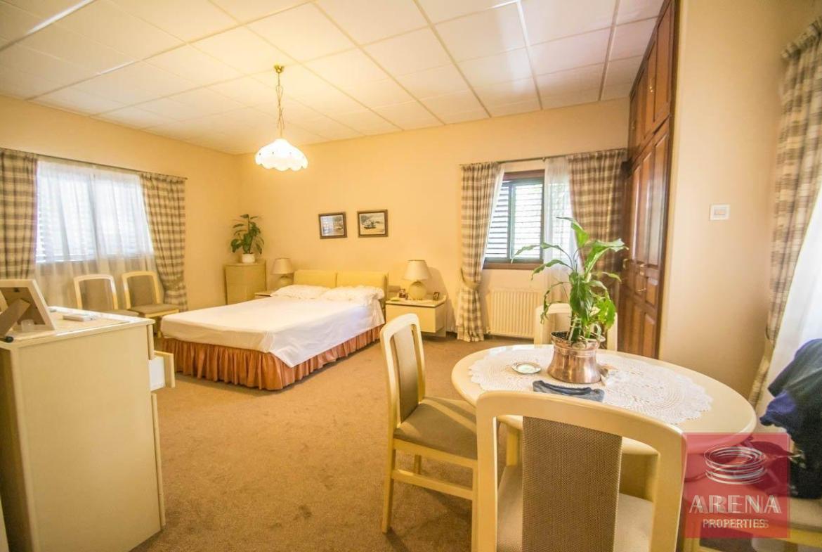 4 bedroom detached house in the Faneromeni area, in Larnaka, 15 minutes walking distance from the beach. The house is approximately 30 years old but was built with the finest materials and has been well maintained up until today. The interior doors are solid wood as well as the wardrobe doors, there is central heating, electric garage doors, fireplace and enough space-provisions for a swimming pool. Upstairs we have 4 bright bedrooms, with the master bedroom offering a vast amount of space. The family bathroom is also of good size. The ground floor comprises of a smaller lounge area that is currently being used as a TV room, there is also another bigger room featuring the main dining table, a fireplace and a separate seating area. The kitchen area is very large, with a breakfast island and family table. Outdoor areas comprise of a double garage, mature garden, barbecue area, storage shed and much more. The area next to this attractive house is a ‘green’ area and can never be built on. Viewings by appointment.