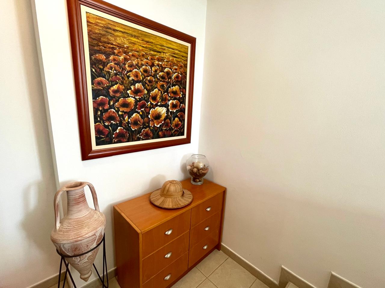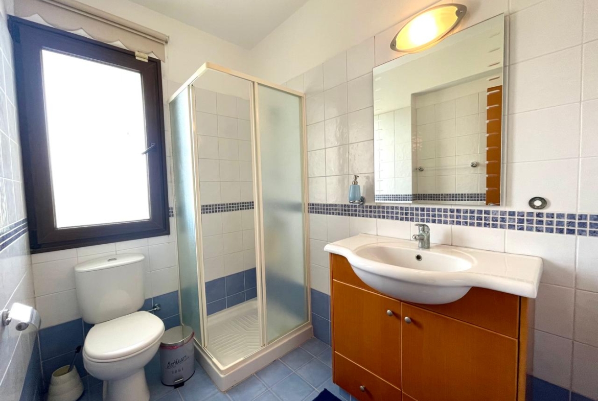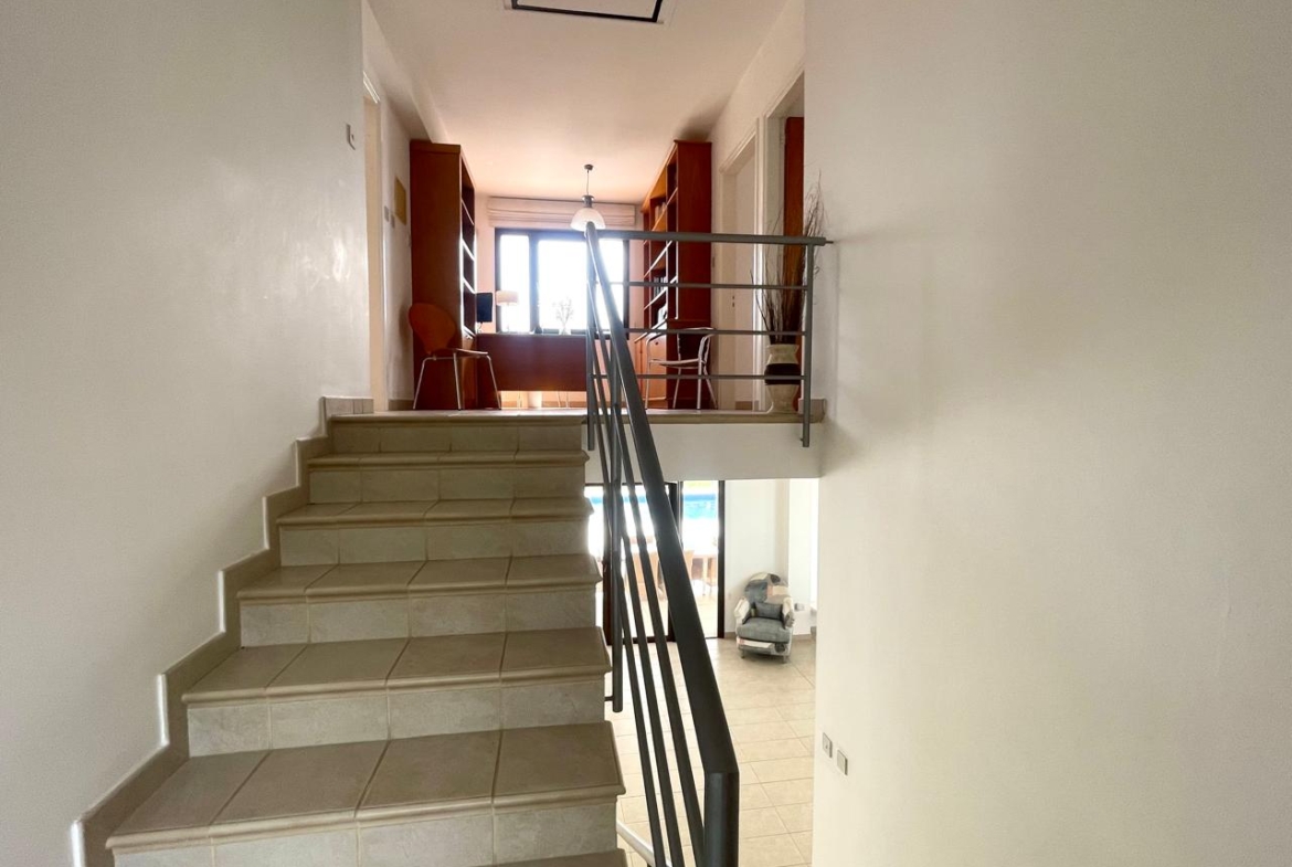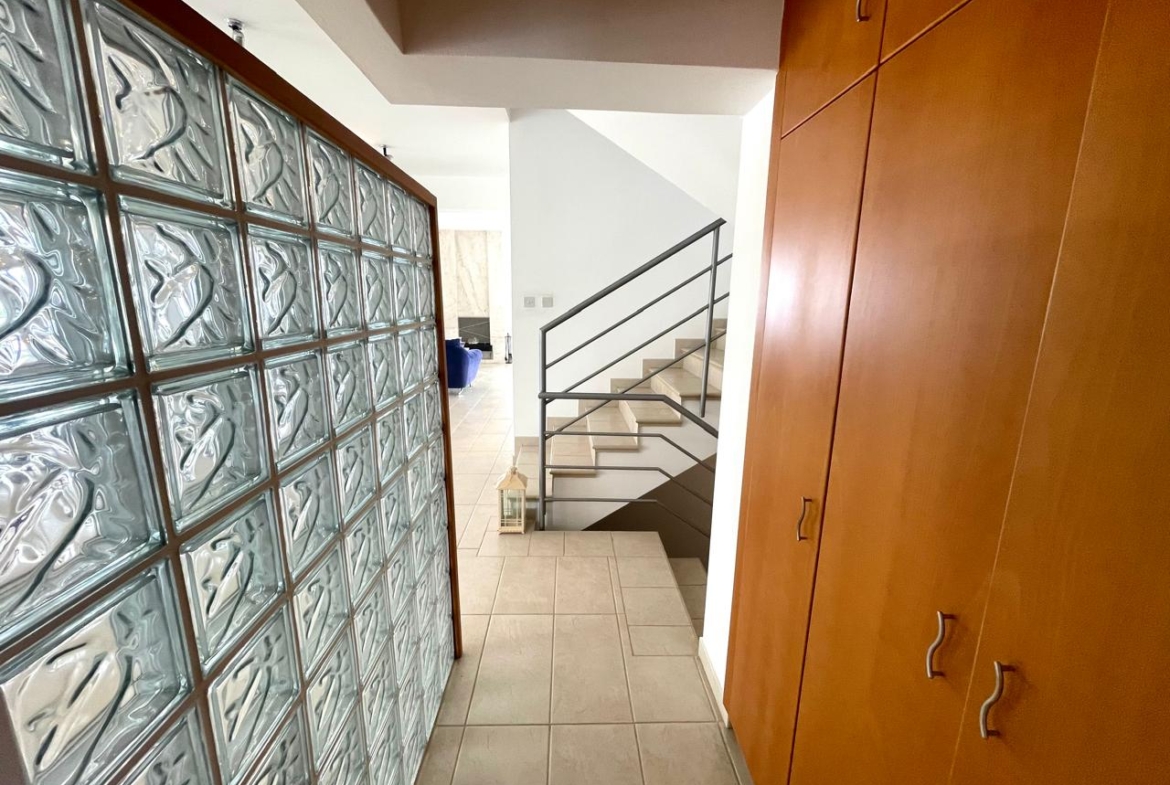Double Storey House for rent in Larnaca, Agios Theodoros village. On the ground floor consists of a spacious open plan living/dining area with fireplace, separate kitchen and a guest toilet. A spiral staircase leads you to the first floor which consists three bedrooms, the master bedroom has en-suite shower with wc and a main bathroom with wc. The property has a covered internal area of 270 sqm.