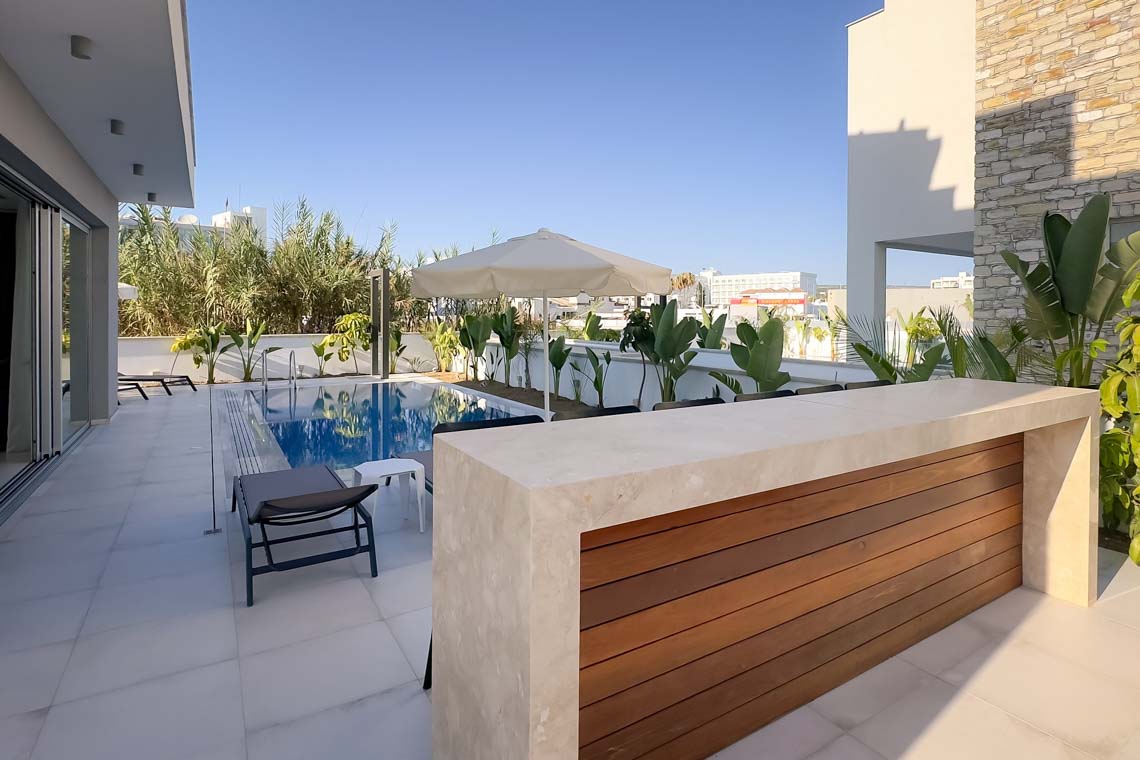 In the heart of Ayia Napa, only a short walk from the monastery square and even closer to the sea, this villa is situated. In a gated development that compromises only eight villas, while offering its owner the privileges of a luxurious detached property in a central location.