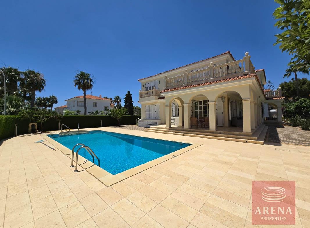 This modern and stylish villa in the Cape Greco area has been thoughtfully designed with comfort and harmony in mind. The famous sculptor Georgy Frangulyan has taken care of the property’s whole design. Located in the heart of the cosmopolitan beach resort of Protaras, this villa has everything to offer. Stunning beaches, turquoise waters, and an array of welcoming restaurants, bars, and cafes make up one of the most popular coastal resorts in Cyprus.