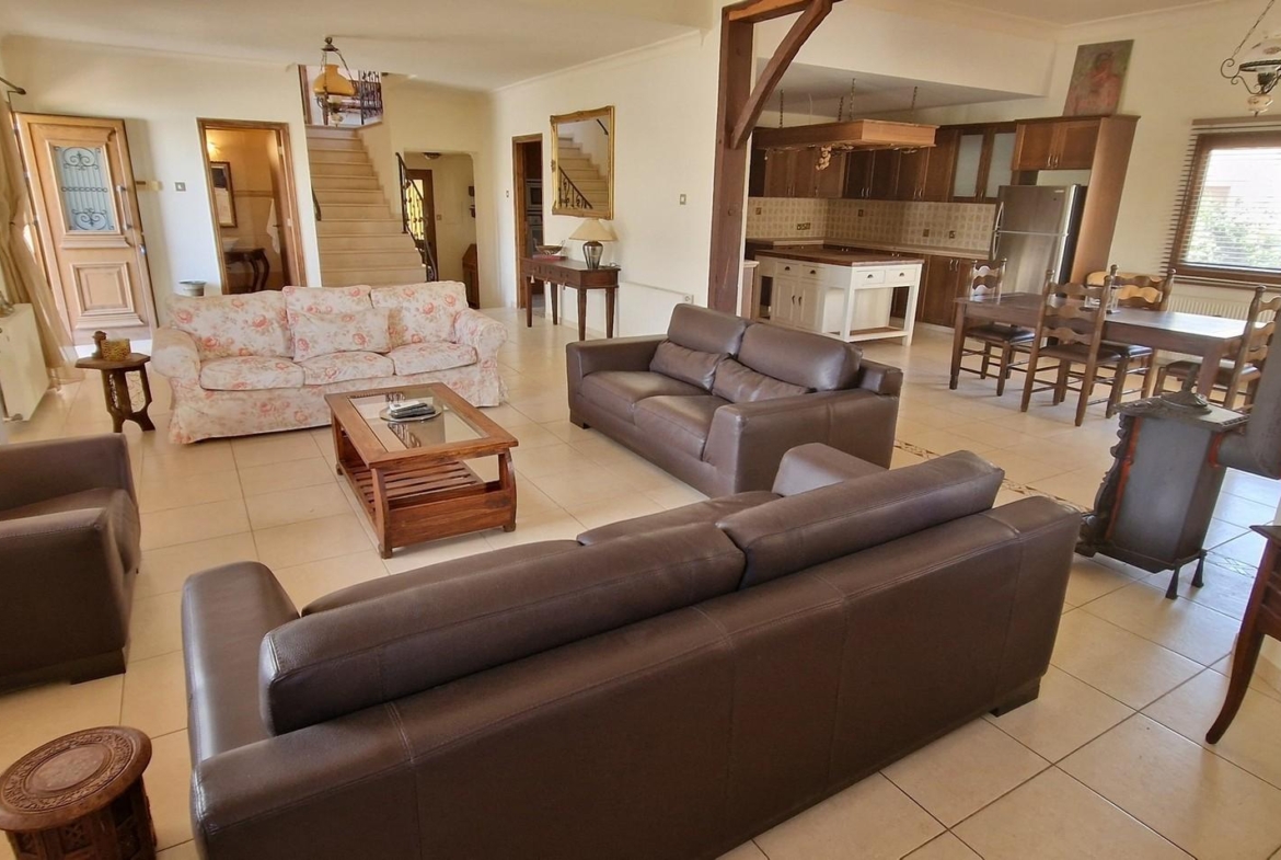 On the ground floor, the villa offers an extremely spacious living room, a very large main kitchen with dining area, a second spacious kitchen, a guest WC and a downstairs bedroom.