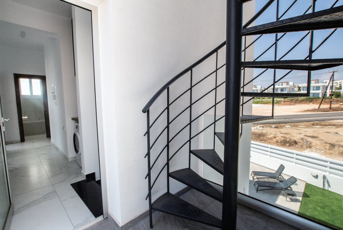 The first floor has an external staircase leading up to the fantastic 60m² roof garden which offers panoramic views of the area, the sea and the picturesque hilltop Church of Ayios Elias.