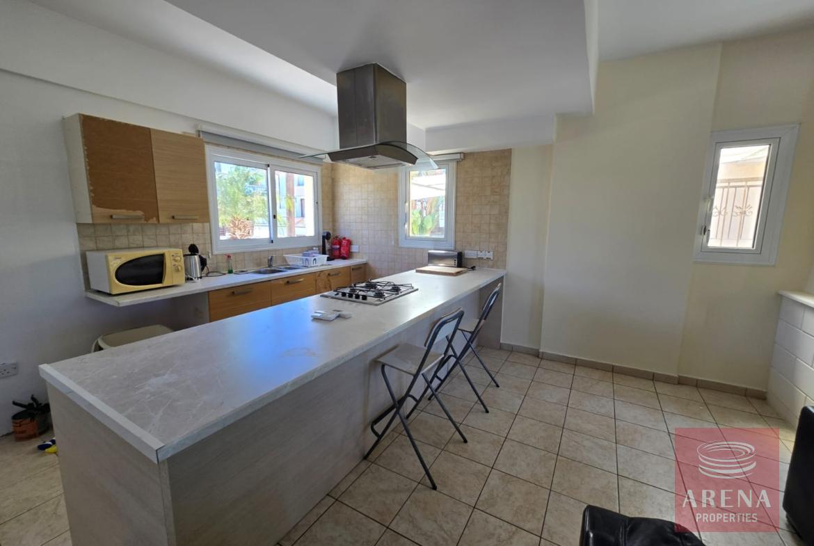 This exclusive 5-bedroom villa is situated in one of the most sought-after locations in Kapparis, just a short walk from Fireman’s Beach. The open-plan layout seamlessly connects the modern kitchen, dining area, and living room, creating a bright and inviting space.
