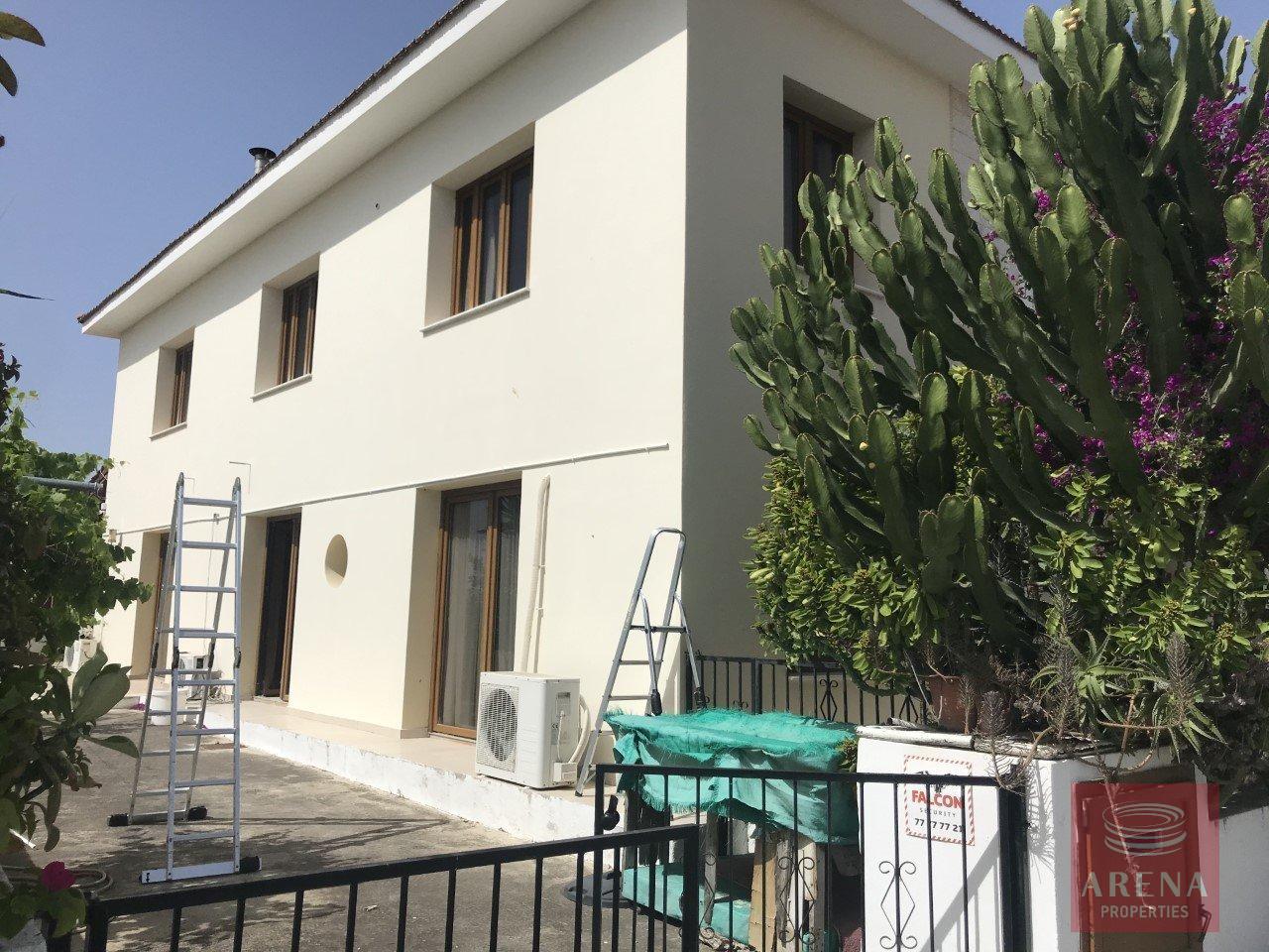 A stunning originally designed and built 5-bed house connected to a large glass fronted showroom and offices at the front located in the much sort after area of Livadia on the main road just a 2 minutes drive to the center of Larnaka. This property is ideal for those who have their own business as this building is on the main road and has a dropped curb to allow access. There is currently a new road being built to connect directly to Dhekelia road. The showroom has a covered area of 150m2 and has 2 WC’s, glass-fronted showroom and several offices and also benefits from provisions to extend the building up by another floor. The house itself benefits from A/C, double glazed windows, en-suite, fitted kitchen with a separate fitted kitchen, fireplace, TV room, guest WC with shower, fitted bathroom, 3 storage rooms, ceramic tiled floor, granite stairs and off-street parking. Title deeds are available.