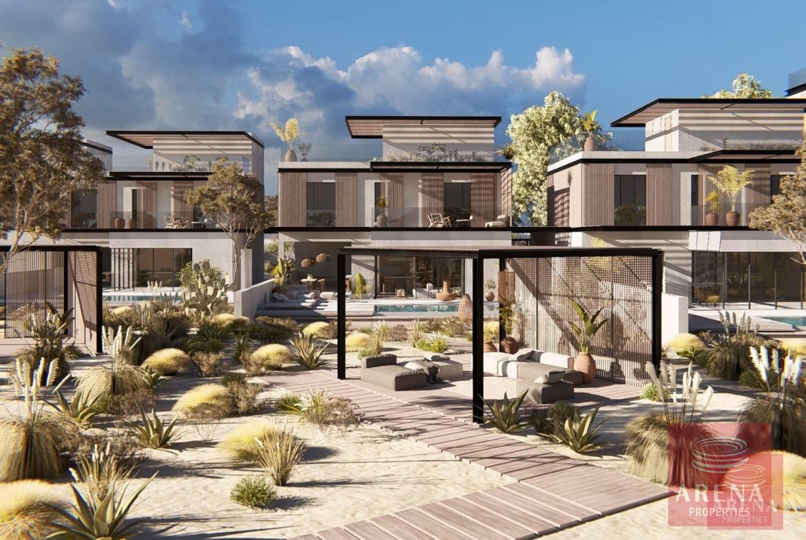 Nestled in the heart of Protaras, adjacent to the pristine Cape Greco conservation area, it is a haven of residential bliss. Perched on one of the most privileged beaches, it boasts crystal-clear turquoise vistas and direct access to the soft sands. The celebrated blue flag Nissia Beach, renowned for its translucent and immaculate Mediterranean waters, lies at the development’s forefront, offering a serene aquatic tableau. This is an enclave of 25 exclusive units, crafting a distinctive living experience. It features an array of 5-bedroom villas and 2, 3, and 4-bedroom beachfront apartments, each epitomizing high aesthetic standards, avant-garde architecture, and premium quality, raising the bar of luxury living. Designed for seclusion, every villa is a sanctuary with its own swimming pool, verdant garden, private parking, and a rooftop garden that captures the enchanting Protaras sunrise. The apartments ascend in a four-story edifice, each with expansive balconies and, for the pinnacle units, rooftop gardens. The complex is also home to a cutting-edge fitness studio and massage parlors. The communal areas are meticulously crafted to transcend the ordinary, offering a hotel-like ambiance and exclusivity. The residences are ingeniously designed to merge indoor elegance with outdoor allure, forging a harmonious living space that invites residents to savor every facet, in every season. With a commitment to excellence and functionality, each dwelling is not just a home but a testament to luxurious practicality and comfort.