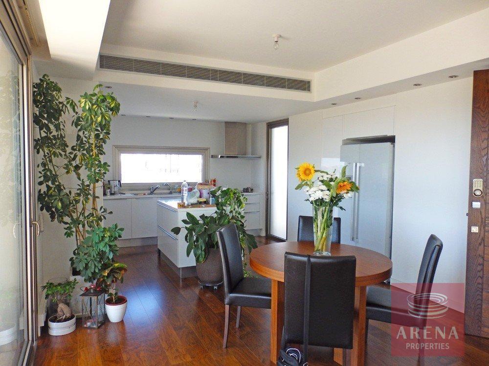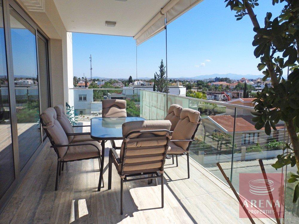 It`s a modern two bedroom apartment on the whole third floor. There is a very spacious living, dining area with an open plan kitchen with all electrical appliances. There are two large bedrooms with fixed wardrobes, the master bedroom with en-suite, family bathroom and two huge verandas. It’s located in a prime area and quiet neighborhood, around the area you may found all amenities in a short distance and is very near to the University of Cyprus and Academias Park. Very easy access to the highway and just five minutes to the center of the town.