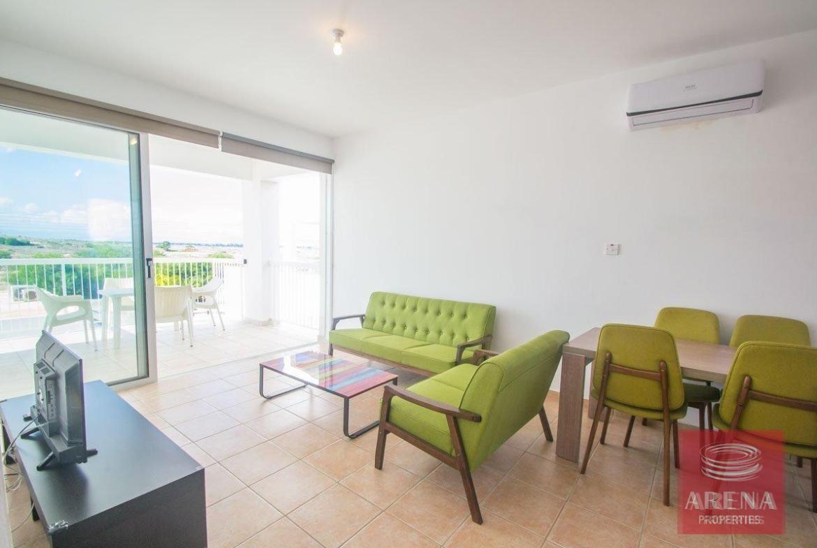 For rent this 2 bedroom apartment in a quiet area of Paralimni, with Sea View, private parking and communal swimming pool. This property is located on the 1st floor taking full advantage of the panoramic views of the area, you will have private parking and the use of the communal swimming pools, the apartment has open plan living, dining and kitchen areas, there are 2 good sized bedrooms with fitted wardrobes and a balcony where you can relax and take in the scenery, the nearest area of Kapparis has a selection of beautiful beaches and bays and the apartment is within easy distance of the local amenities where you can find local shops bars and restaurants.