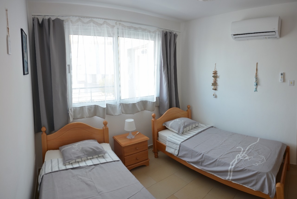 This modern and stylish 2-bed apartment in Kapparis has been thoughtfully designed with comfort and harmony in mind. The style of the development is contemporary so as to blend in with the Mediterranean style of the surrounding area and is a combination of both classic and modern Cypriot architecture.