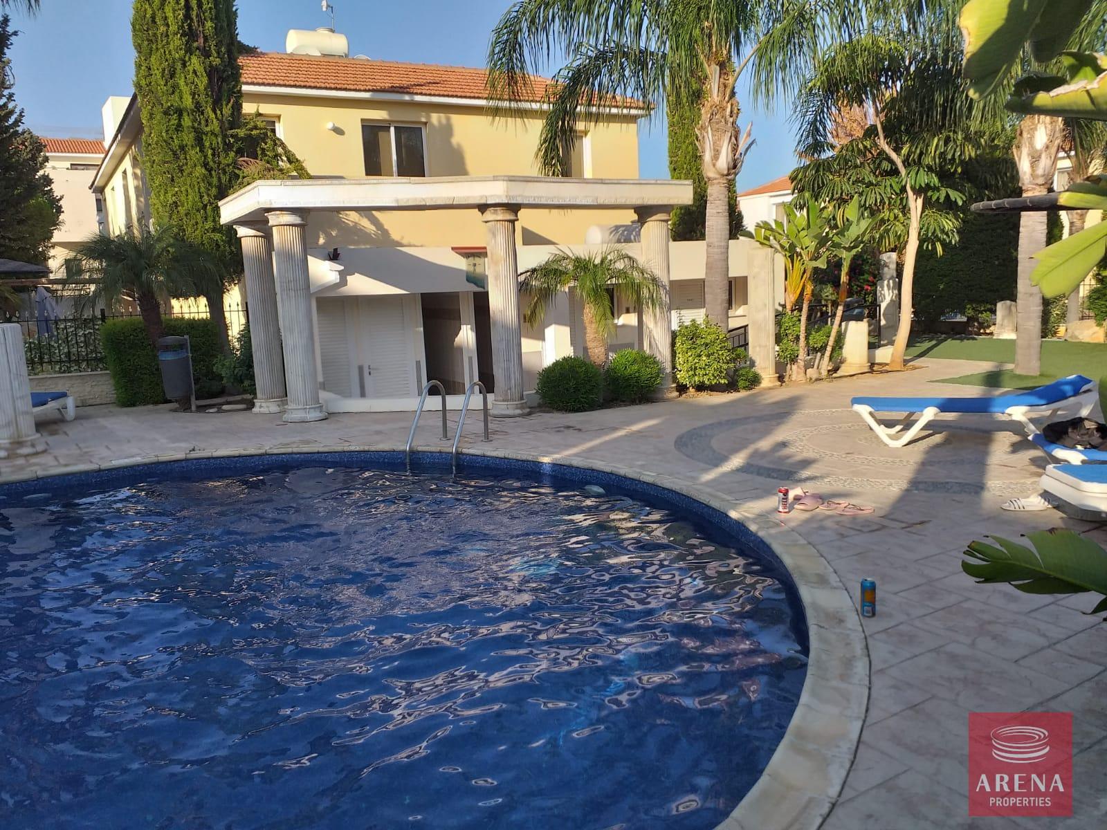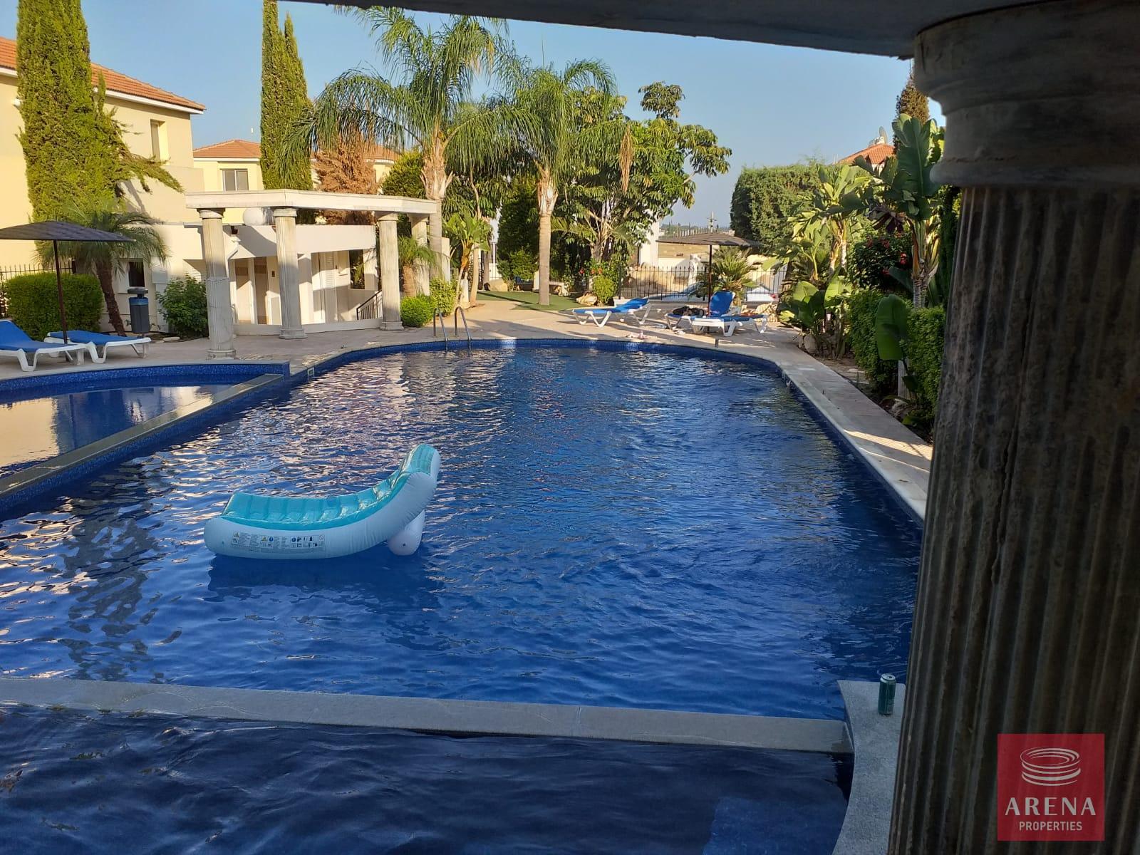 The apartment boasts a spacious living area, a well-appointed kitchen, and two comfortable bedrooms. The communal pool is perfect for relaxing and enjoying the sunny Cypriot weather. The uncovered parking and additional storage space provide practicality and ease. Families will appreciate the kids play area, offering a safe and enjoyable space for children to play.