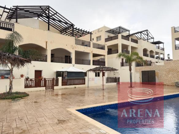 A well-presented 2 bedroom apartment located in Paralimni, near the church of Ayios Demetrios in a quiet residential neighborhood, yet close to amenities. The complex offers a communal pool, access to showers, and covered parking.