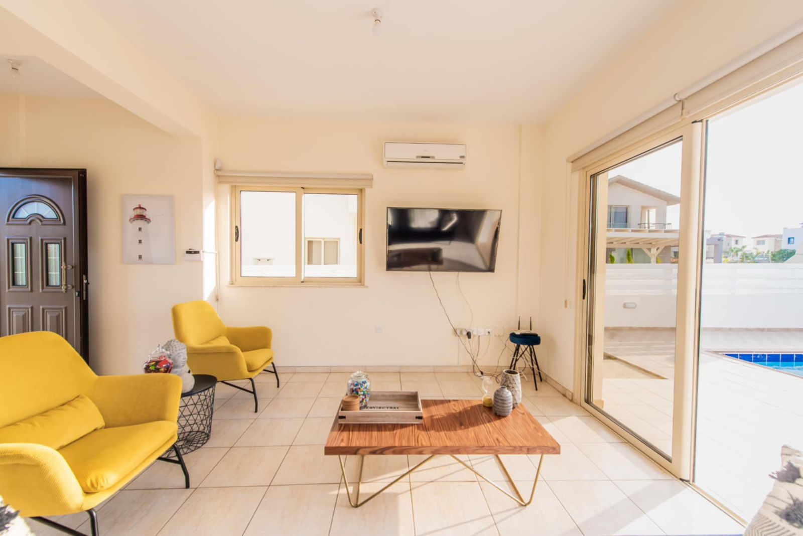 The villa features a beautiful private swimming pool surrounded by a well-maintained outdoor area, creating the ideal setting for relaxation and entertaining. Sea views can be enjoyed from the property, and the beach is just a 10-minute walk or a 2-minute drive away. Local restaurants, cafés, and bars are close by, while Larnaca Airport is conveniently located 63km away—approximately a 50-minute drive.