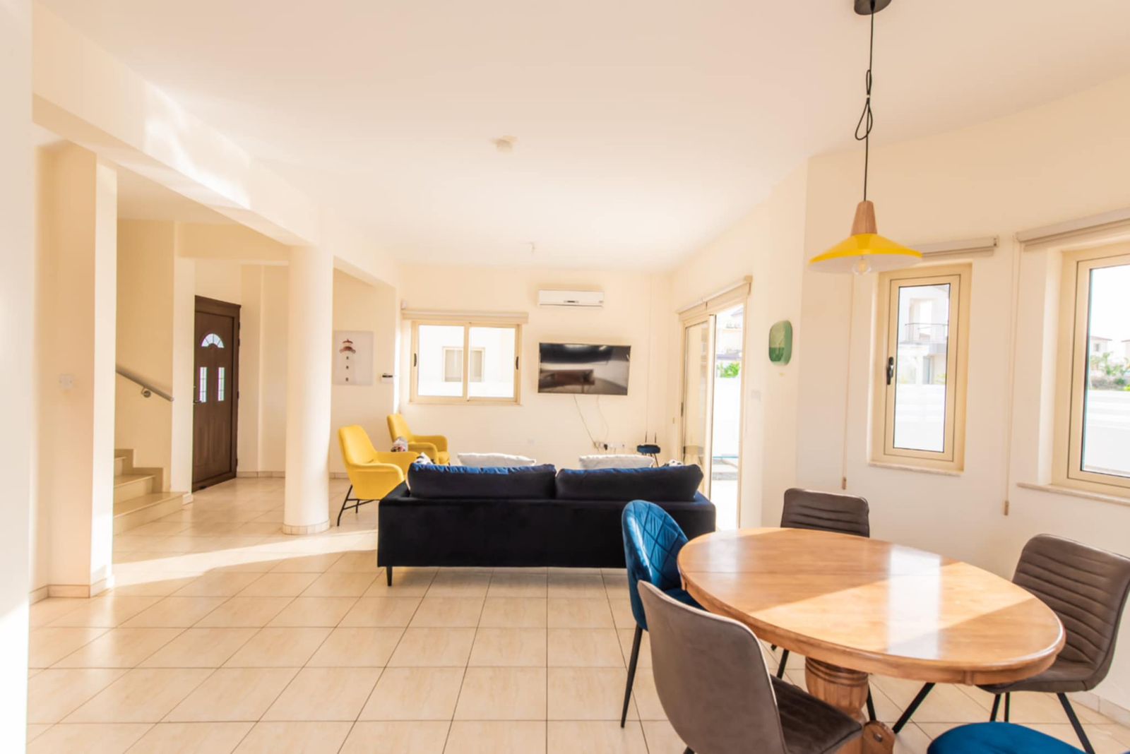 Open-plan living and dining area filled with natural light