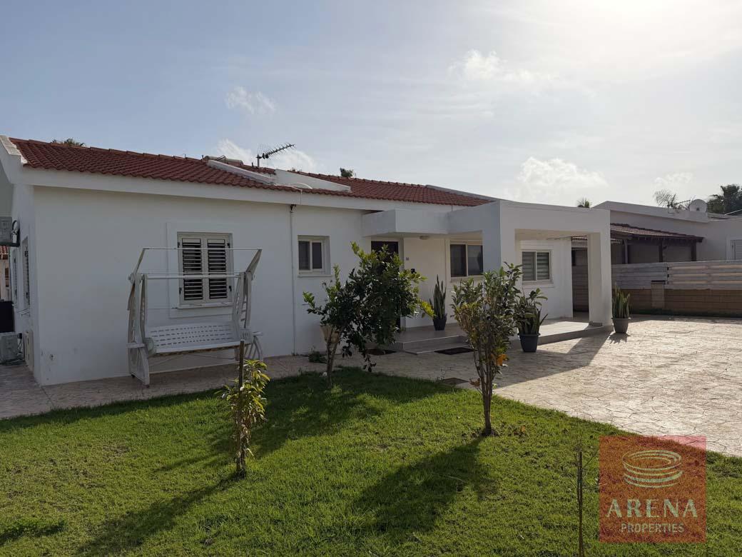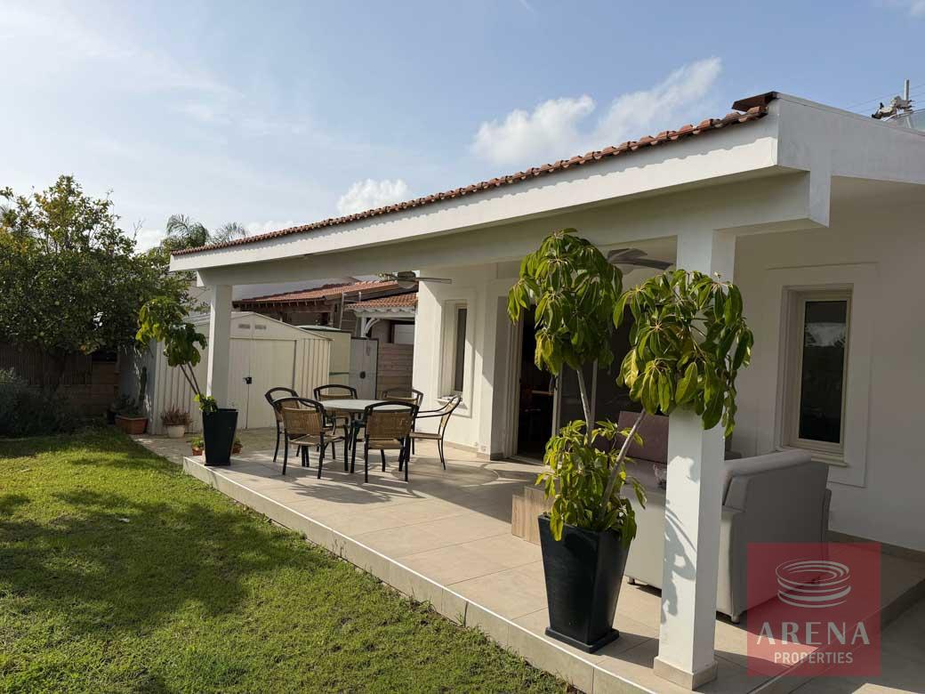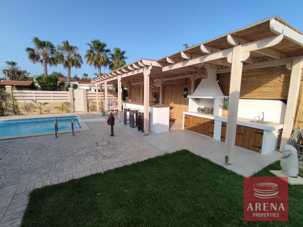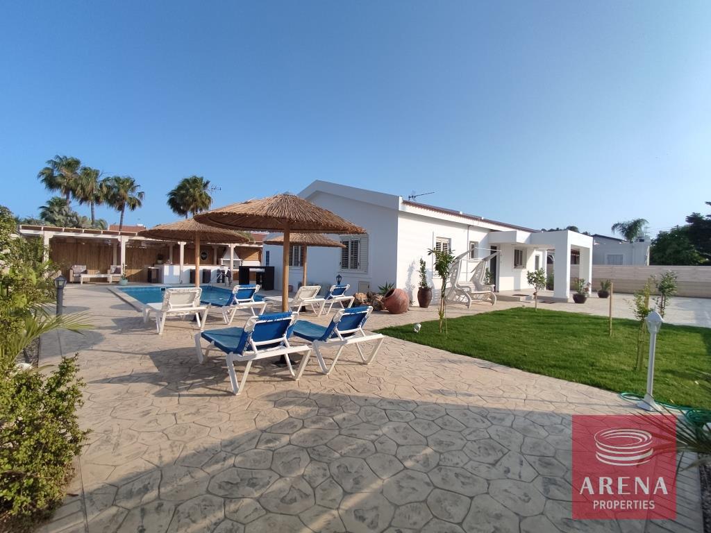 Three bedroom bungalow for rent in Pervolia-Meneou beach side, Larnaca. Located only 70m from the beach, in a short drive to all amenities, easy access to the high way, and only 5km from the Airport, and 12km from Larnaca city center. The house consists of an open plan living/dining room and kitchen, three bedrooms, family bathroom, W/C with a shower, covered veranda, and large garden with pool and pool bar/BBQ.