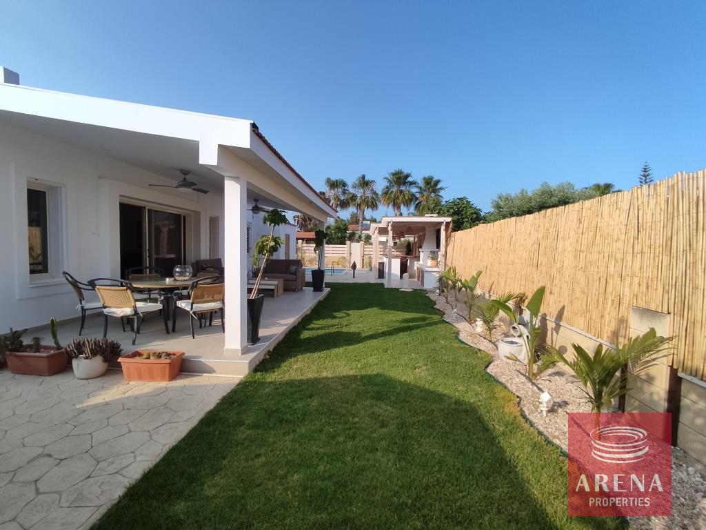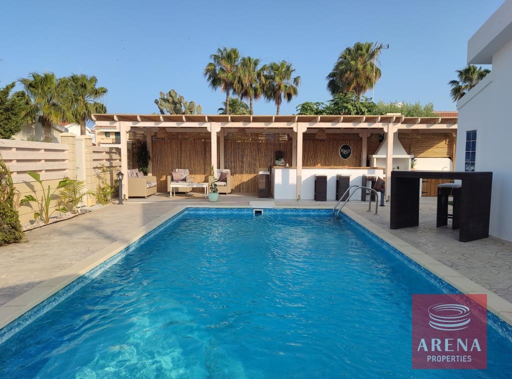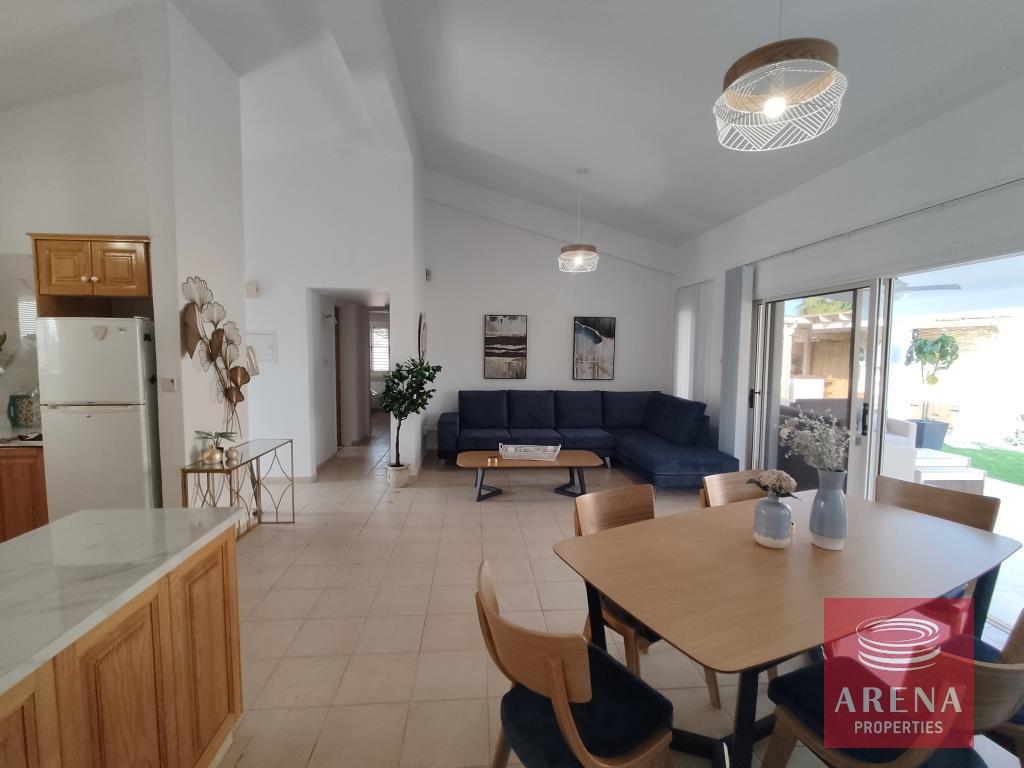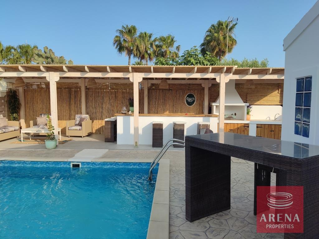Three bedroom bungalow for rent in Pervolia-Meneou beach side, Larnaca. Located only 70m from the beach, in a short drive to all amenities, easy access to the high way, and only 5km from the Airport, and 12km from Larnaca city center. The house consists of an open plan living/dining room and kitchen, three bedrooms, family bathroom, W/C with a shower, covered veranda, and large garden with pool and pool bar/BBQ.
