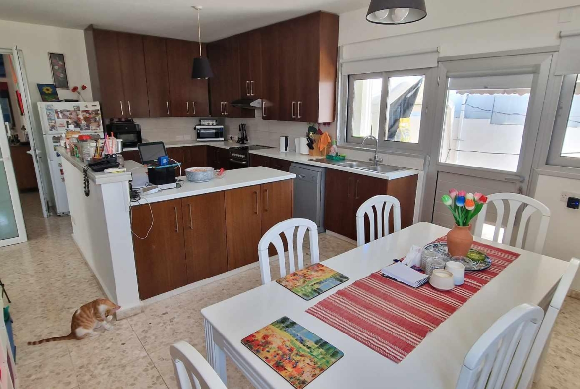 A recently renovated 3-bedroom corner bungalow on a large plot, in a peaceful neighbourhood in Kiti, close to the shopping areas, and with photovoltaic panels system for low energy costs.