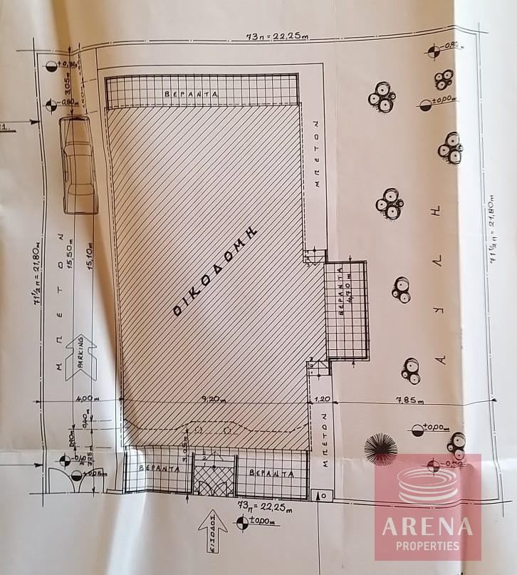 A three-bedroom bungalow in the picturesque village of Vrysoulles. The bungalow is located on a small hill of a cul-de-sac, in a quiet neighbourhood, overlooking the open countryside and is built on a large plot with a patio covering much of the yard.