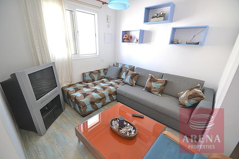 2 Bedroom townhouse is available for sale in Cape Greco just 300 meters away from the sea. Located only 300ms away from the beautiful Mimosa Beach in the Cape Greco area of Protaras, this 2 bedroom townhouse offers the perfect location for a holiday home by the sea. Set back in a quiet residential area, with allocated parking, this well maintained property offers many extra including full air-condition, fly screens, and a relaxing patio area with pergola. The accommodation comprises of an open plan lounge and kitchen with a guest WC on the ground floor, with 2 bedrooms and a family bathroom on the 1st floor. The furniture is negotiable. Excellent investment property for holiday rentals.
