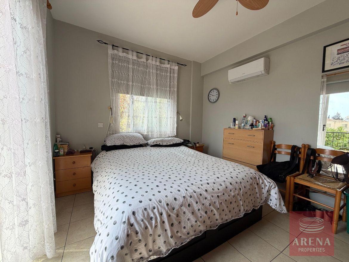 The property features three spacious bedrooms and three bathrooms. The master bedroom includes an en-suite bathroom and a private balcony, while the second bedroom also benefits from its own balcony overlooking the garden.