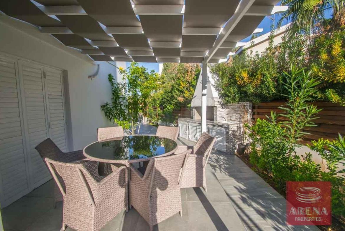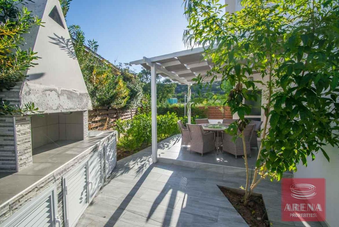 There are 2 entrance gates, one from the main road, with path leading up to the front door and the other leading to swimming pool terrace at the side. The BBQ terrace with built in stone BBQ offers privacy and views of the neighboring hillside.