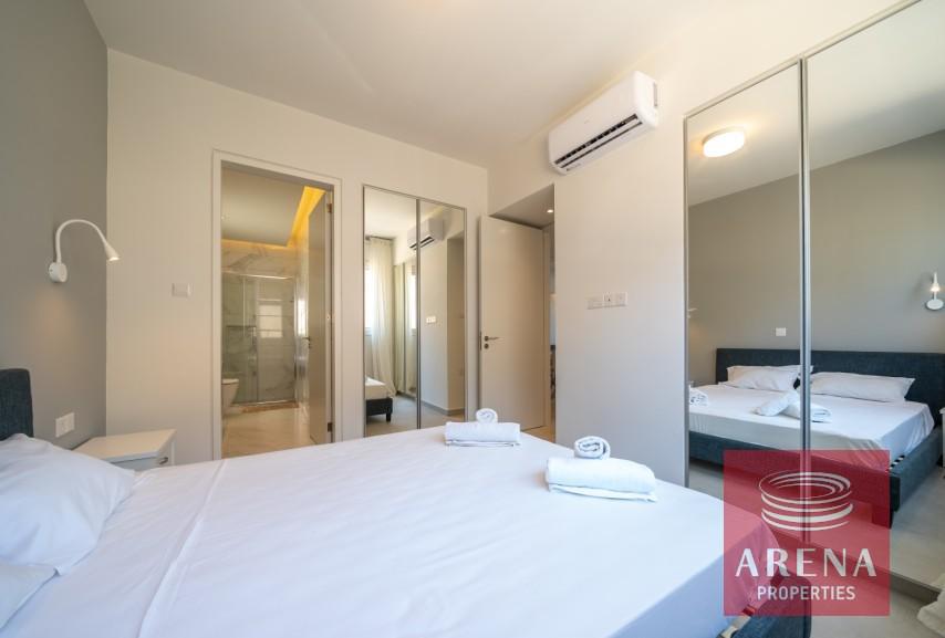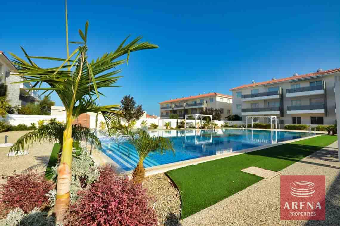 Luxury 2-bedroom ground-floor apartment located in a quiet resort complex at the heart of Kapparis, a year-round seaside resort town in the Protaras area. This luxury seaside complex with extensive gardens, paths, green areas throughout, three communal swimming pools, one Olympic sized with separate children’s pool, a fenced playground, a sports field, and a tennis court, all for resident use is perfect for holidays in the sun.