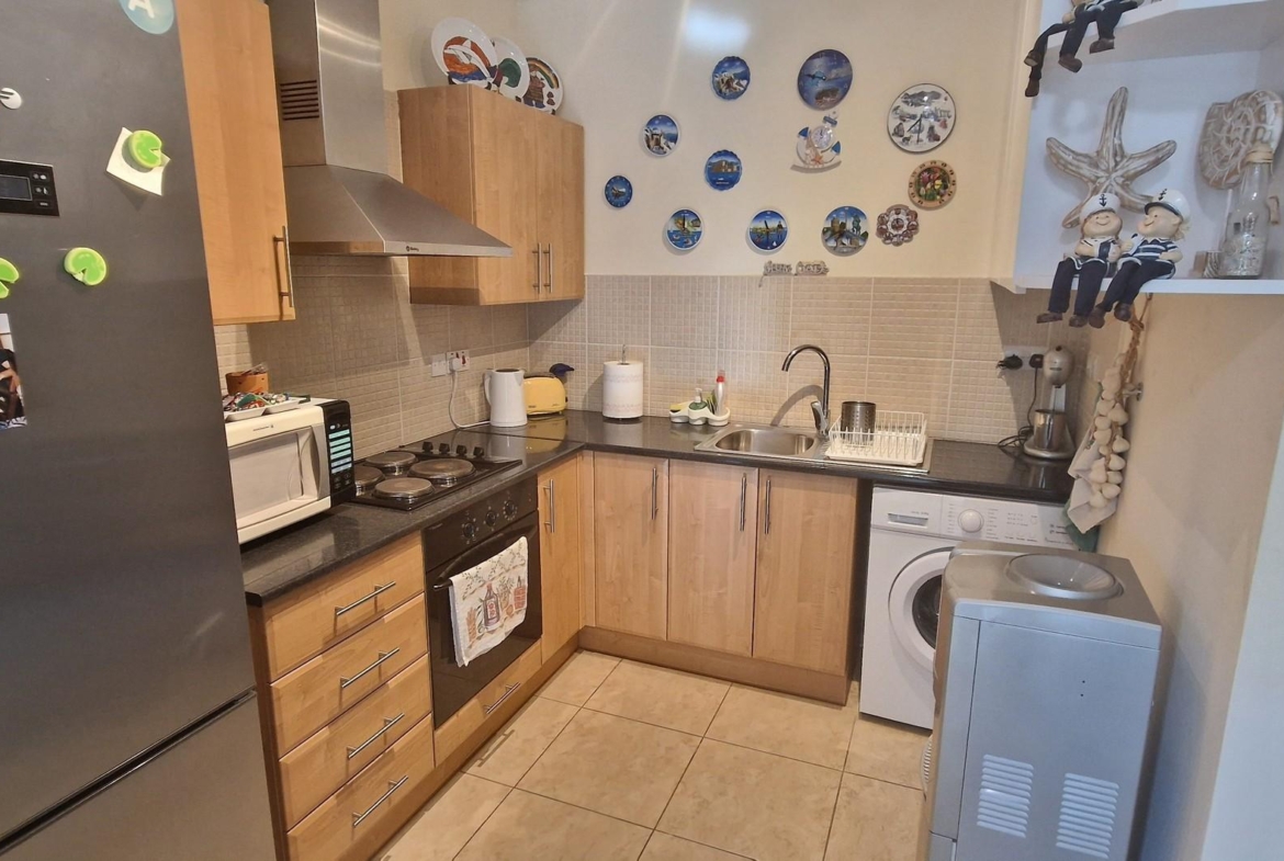 The apartment poses an open plan kitchen, living and dining area, 2 good-sized bedrooms and a family bathroom.