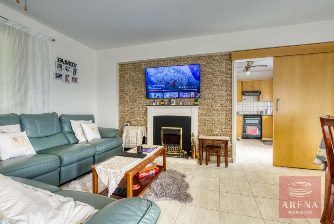 This stunning ground-floor apartment in Paralimni offers a generous 126m² of covered living space, perfect for comfortable family living. It features three well-sized bedrooms, a modern kitchen, and a spacious open-plan living and dining area.