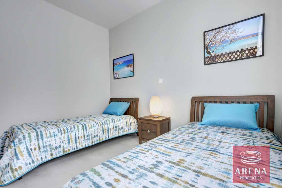 Luxury 2-bedroom ground-floor apartment located in a quiet resort complex at the heart of Kapparis, a year-round seaside resort town in the Protaras area. This luxury seaside complex with extensive gardens, paths, green areas throughout, three communal swimming pools, one Olympic sized with separate children’s pool, a fenced playground, a sports field, and a tennis court, all for resident use is perfect for holidays in the sun.