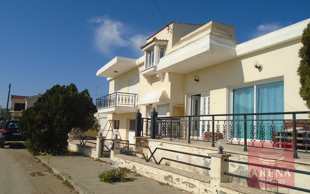 The house in Derynia has an area of 145sqm and consists of a kitchen, a laundry room, an open plan living/ dining area and a guest toilet on the ground floor. On the raised floor there are three bedrooms and a bathroom. Externally there is a backyard and a barbeque area. It has ceramic flooring, double glazed windows, central heating and split units are installed.