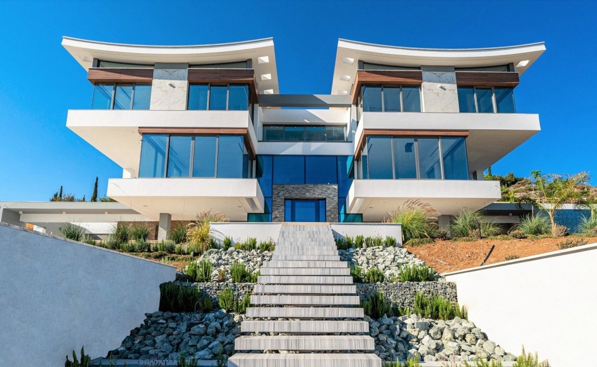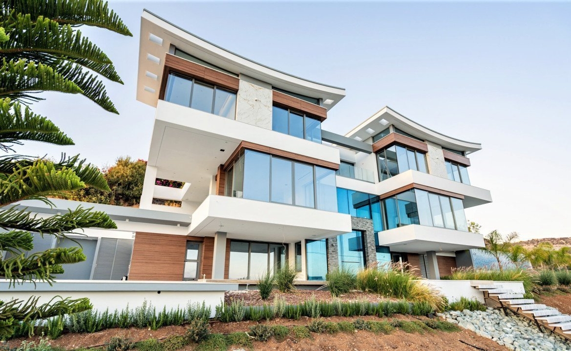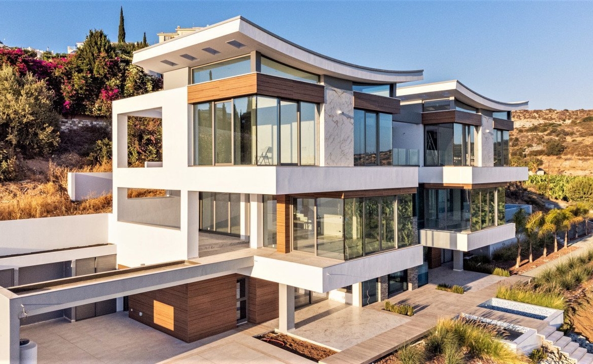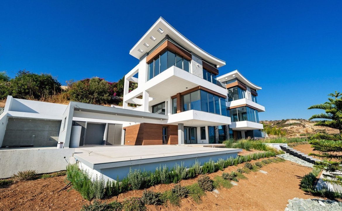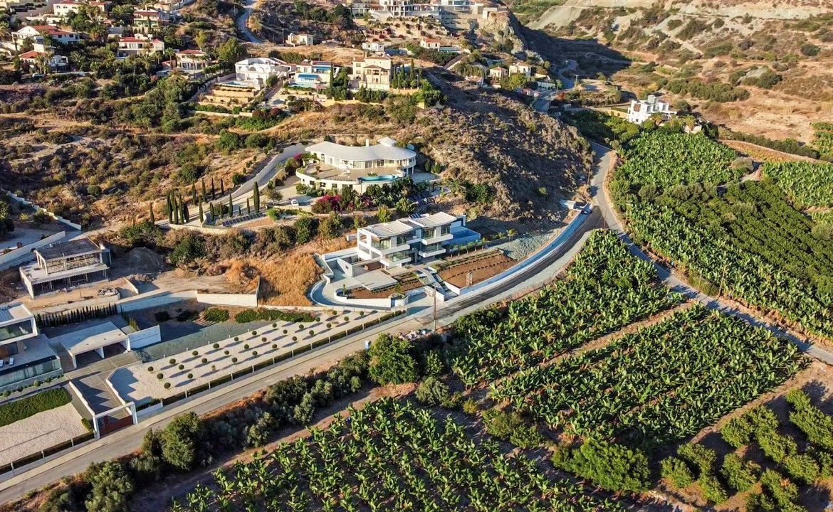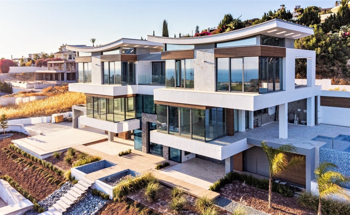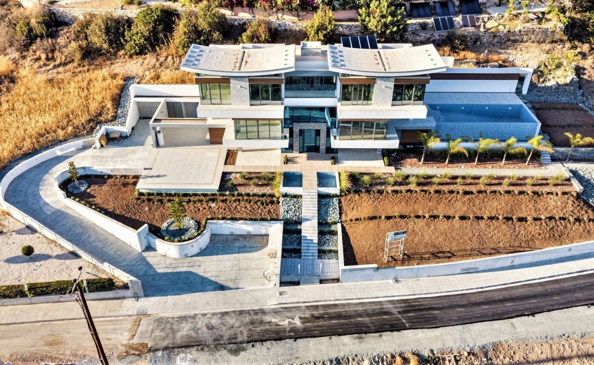 Stunning panoramic views delivered in the comfort of this beautiful privately gated home. Perched on a hill, you have a bird’s eye view, stretching from all along the coast of Paphos to Akamas bay. Each room delivers a view where you can take in the beautiful surroundings and sea views! This villa features 6 bedrooms plus office/cinema room, 9 bathrooms, large spacious two living areas, two dining areas in a 730sq.m internal living space. Offering you luxurious natural finishes throughout: top spec tiles, worktops, bespoke kitchen, elevator, false ceilings and much more!