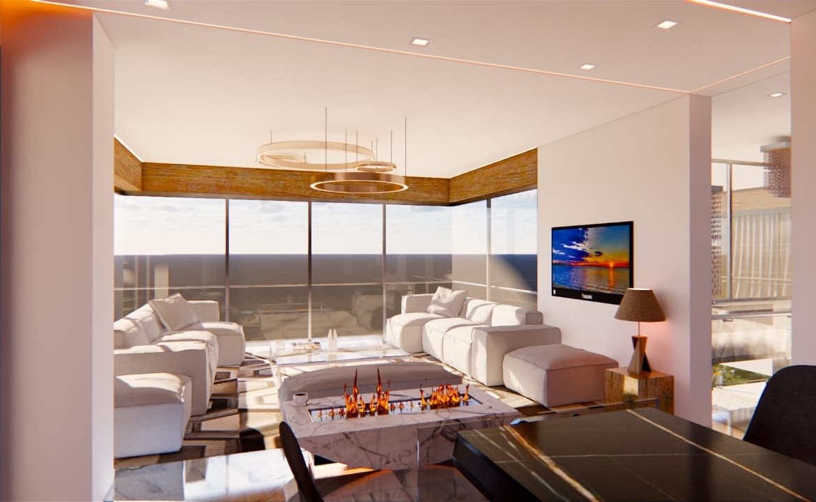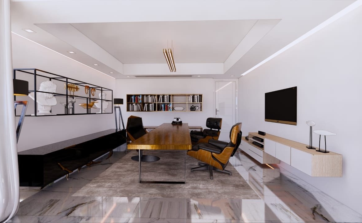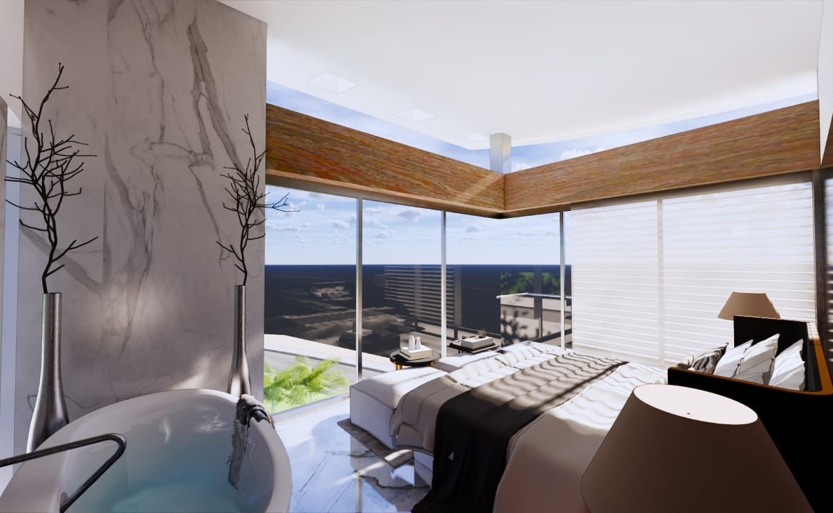 The mountain slope elevation of the plot has inspired this unique architectural concept. The design approach is focused on utilizing the two main charactristics of the site which are the wide angle sea view and the naturally elevated terrain. The villa is positioned into the hilly site, blendingwith the natural landscape while its distintive roof line visually extends the organic geometry of the landcape linking it to the waves of the bayahead. The villa is structurally hinged into the rocky mountain aloowing for the entire facade to be fully cantilevered towards the view. The resulting image of the hovering fully glazed facade, combined with the roof curves created a unique architectural statement of lightness and natural elegance. The entry atrium is designed to provide views of the coastline in front of the plot, forever altering its core appearance to match the surrounding bay and amazing views.