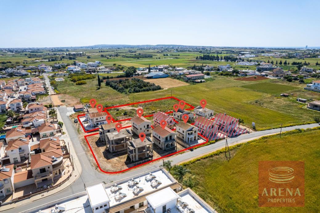 The property concerns a share (75%) of two adjacent fields in Frenaros. The fields have a total land area of 8,085sqm. They are located 630m from Frenaros’ center and 170m from Frenaros – Deryneia connecting road. The share refers to 18 houses: 3 houses that are fully completed, 8 incomplete houses (different stages of completion) and 7 houses for which the construction has not yet started. There is a distribution agreement in place.