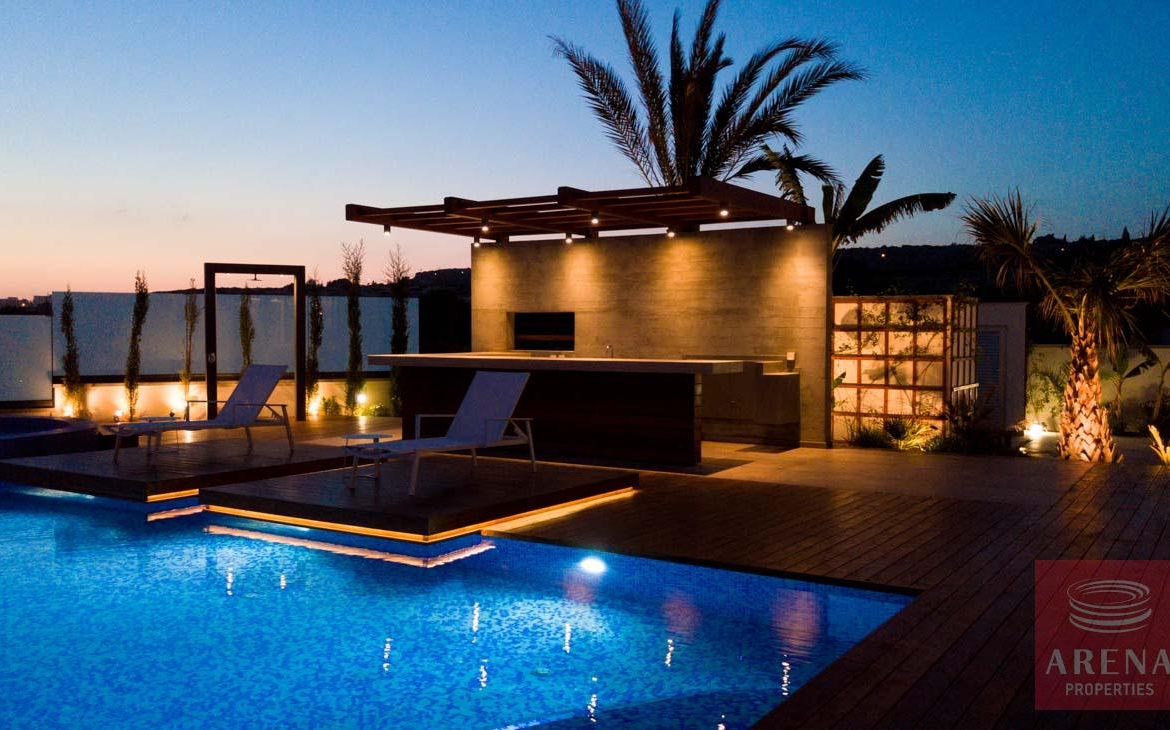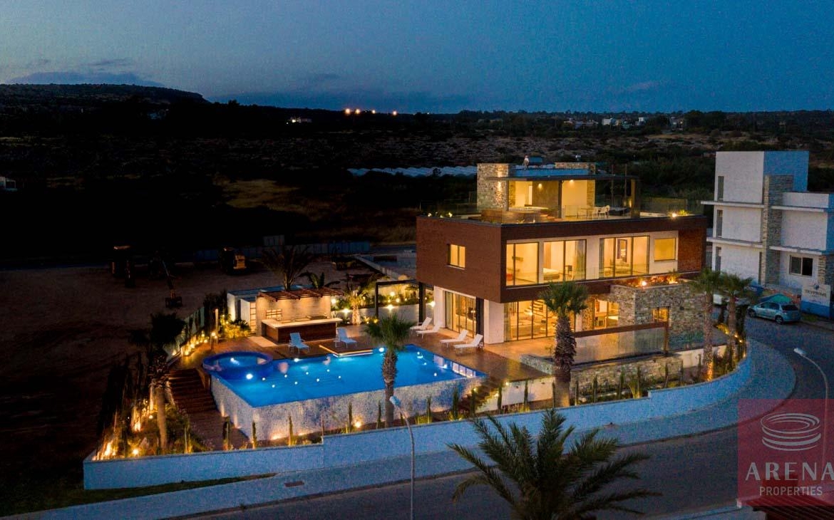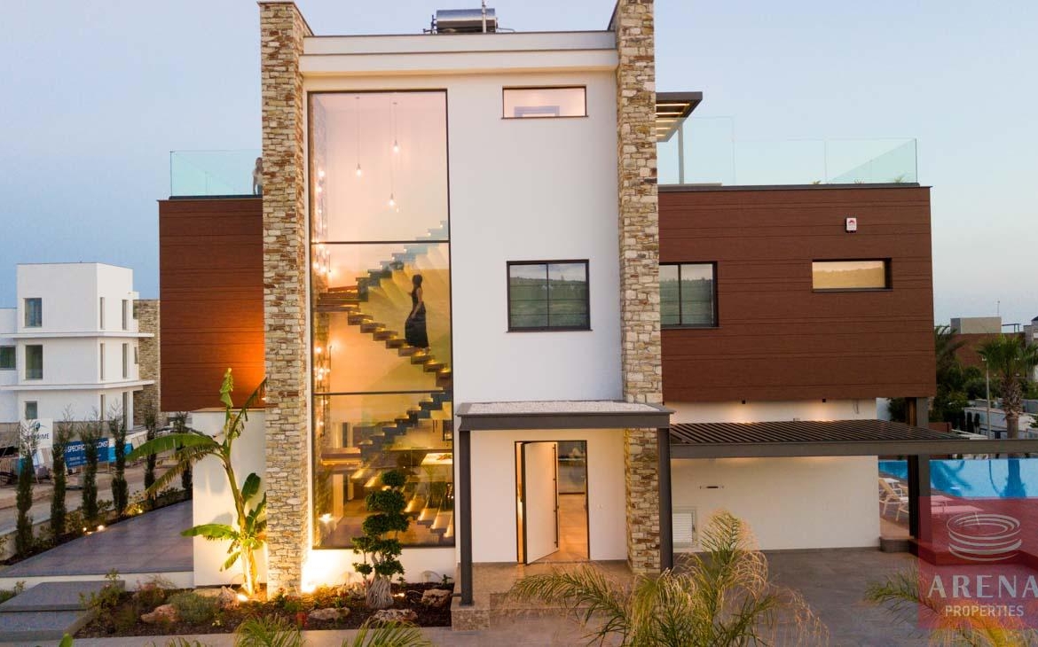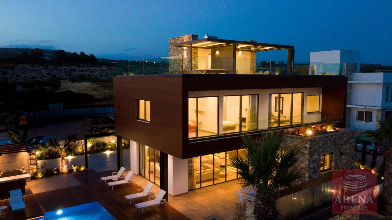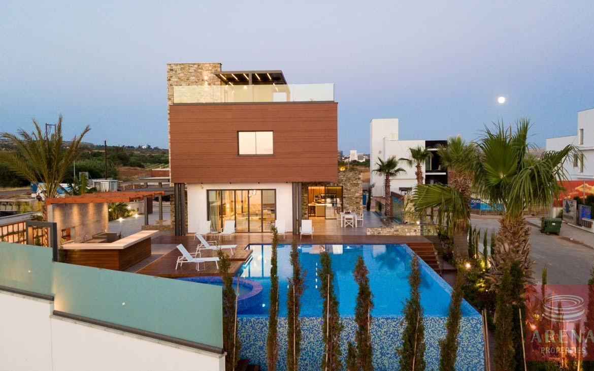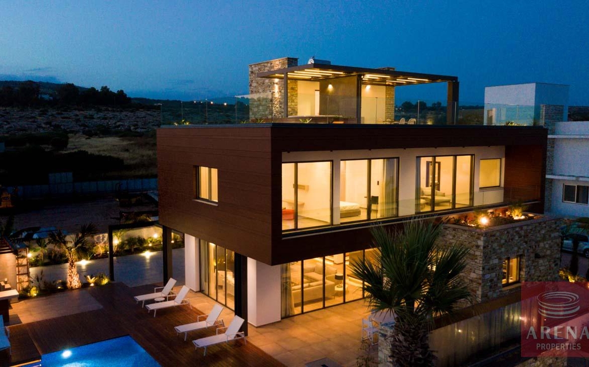This luxurious villa is located on an exclusive development of beachfront villas, 2 km from the center of Ayia Napa, providing the ultimate tranquility at your new home. In an unspoiled setting by the turquoise waters of the Mediterranean Sea, this 3-level property with its vast indoor and outdoor areas, pool, and roof garden, it will take your breath away.