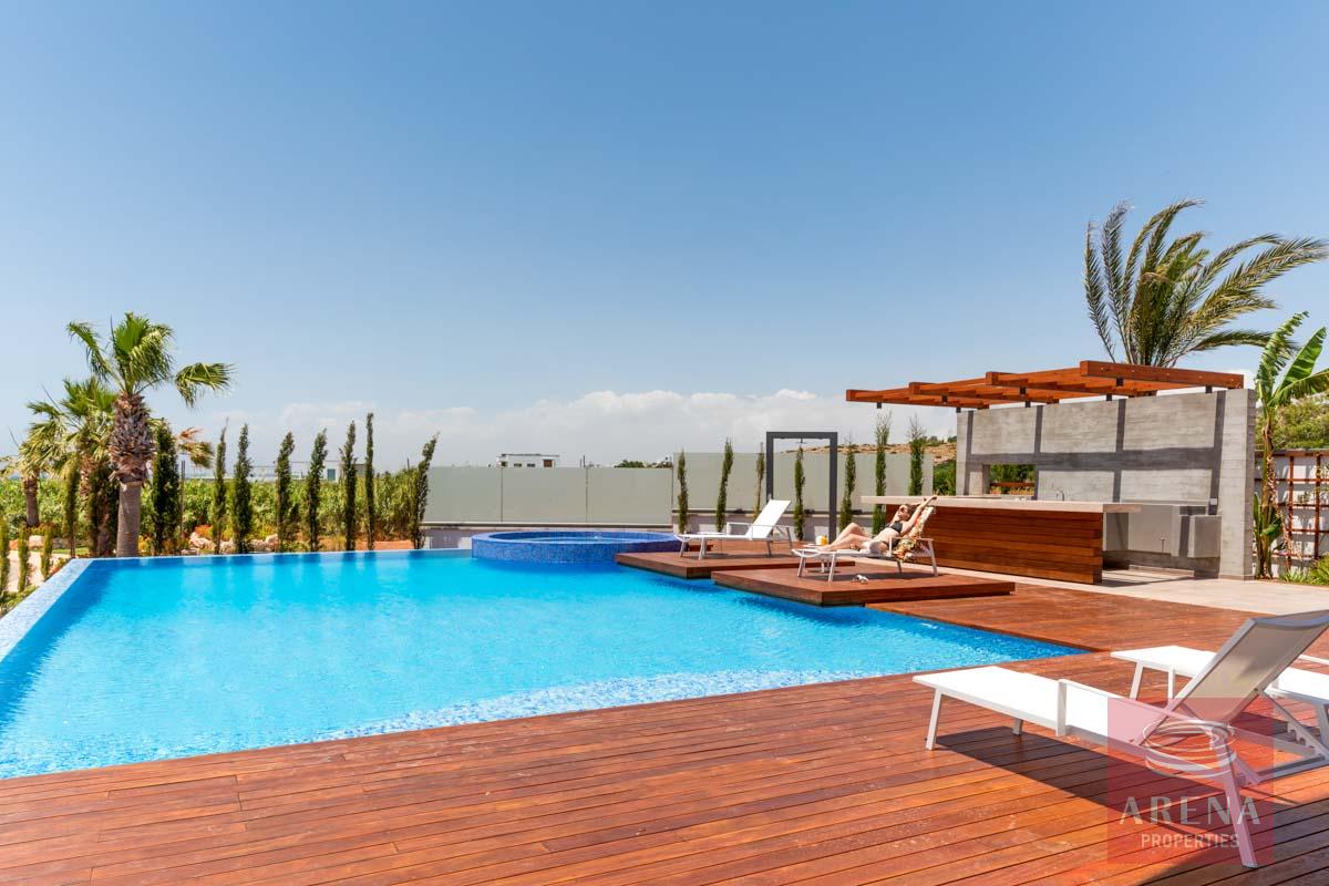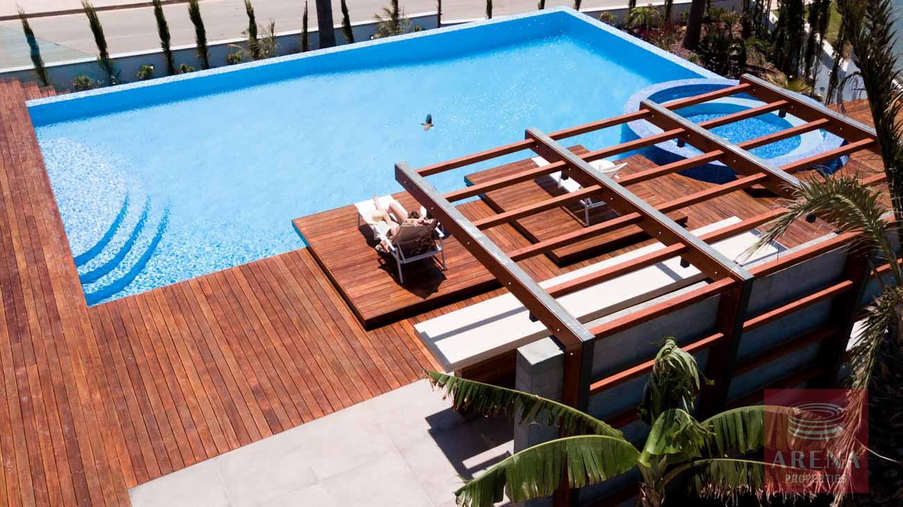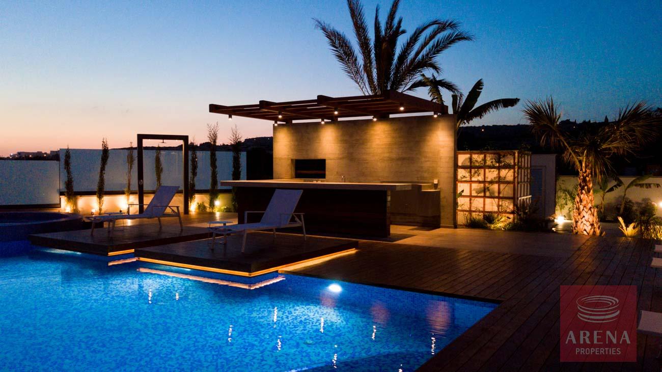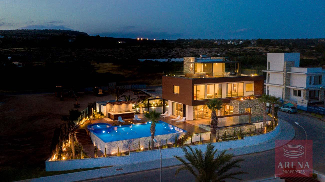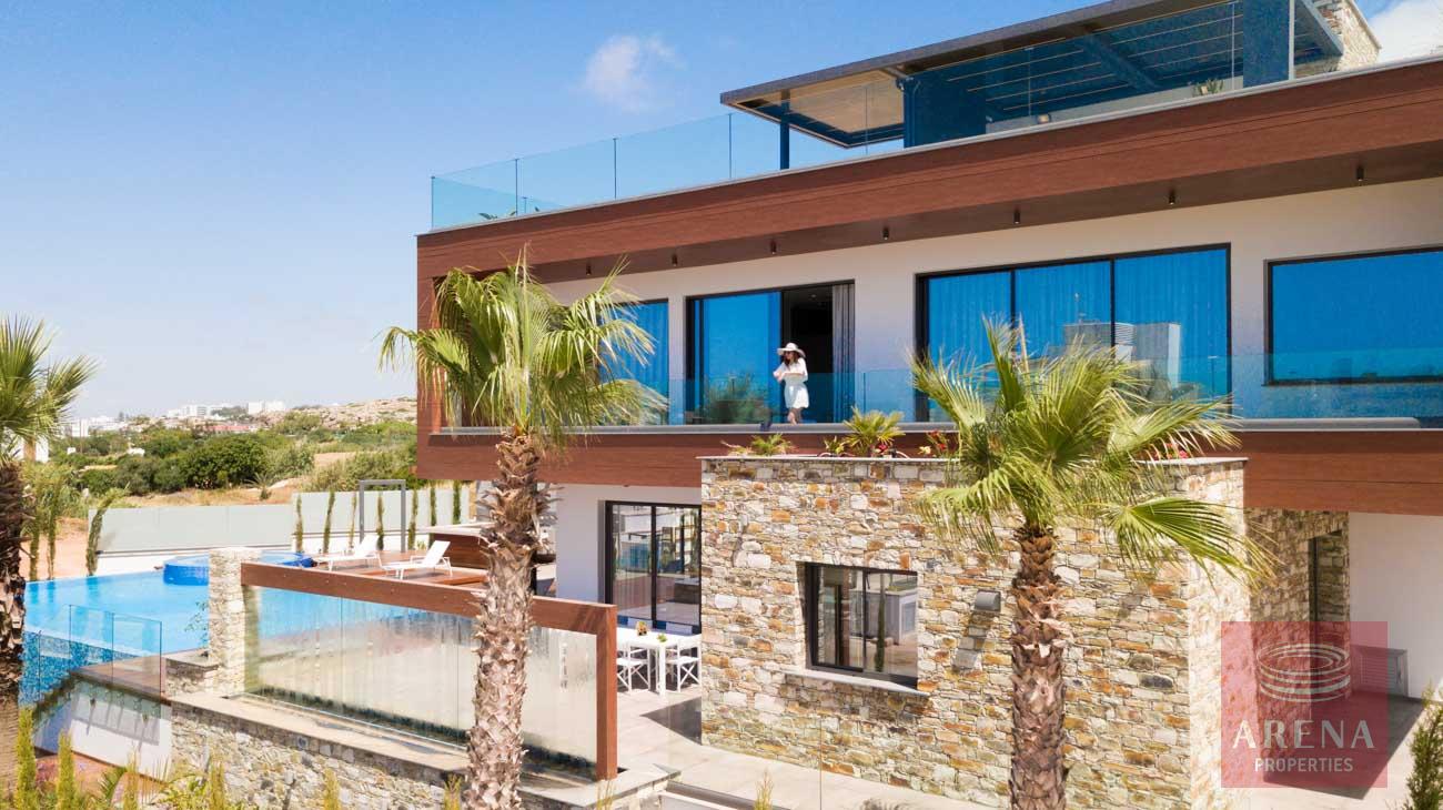 This luxurious villa is located on an exclusive development of beachfront villas, 2 km from the center of Ayia Napa, providing the ultimate tranquility at your new home. In an unspoiled setting by the turquoise waters of the Mediterranean Sea, this 3-level property with its vast indoor and outdoor areas, pool, and roof garden, it will take your breath away.